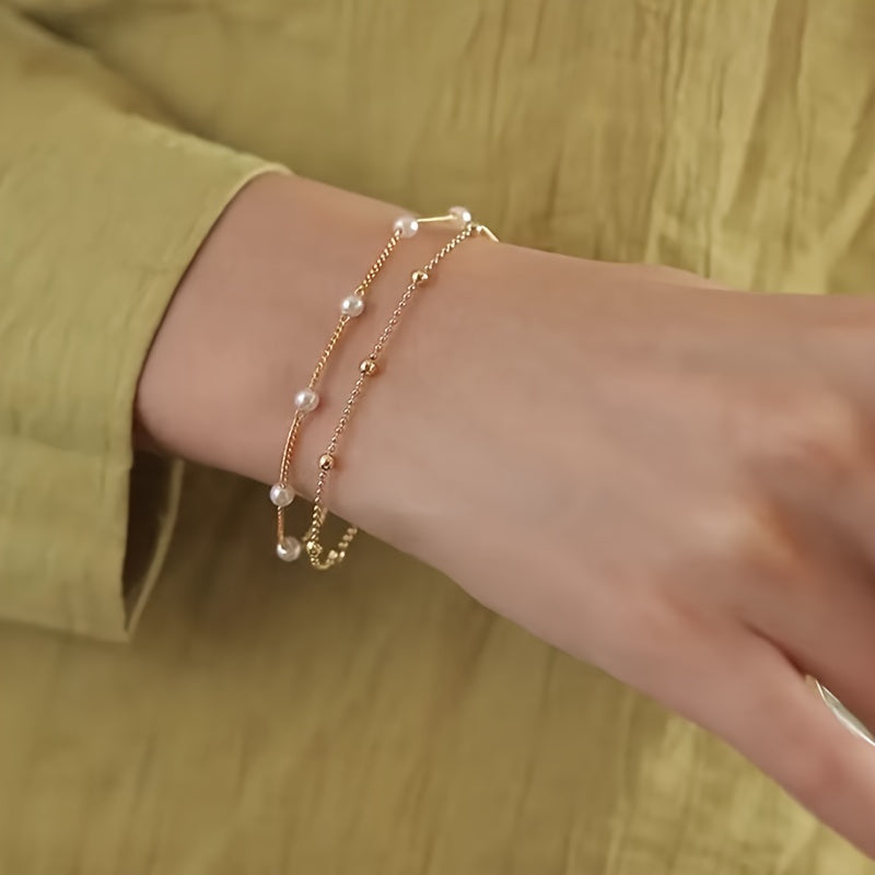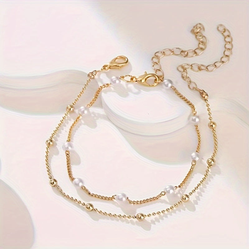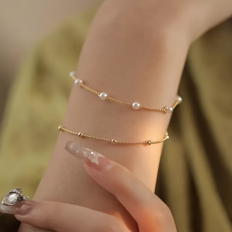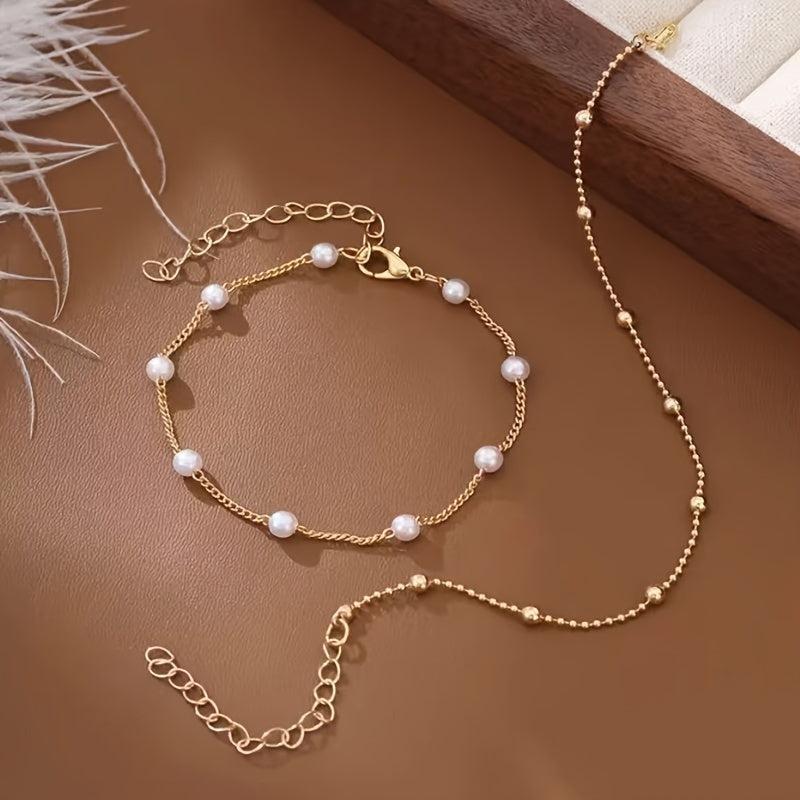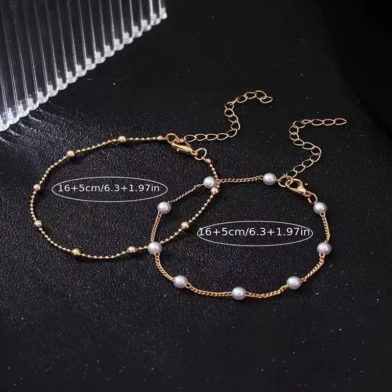Armband-Set, 2 Retro Elegante Stapelbare Armbänder mit Imitationsperlen