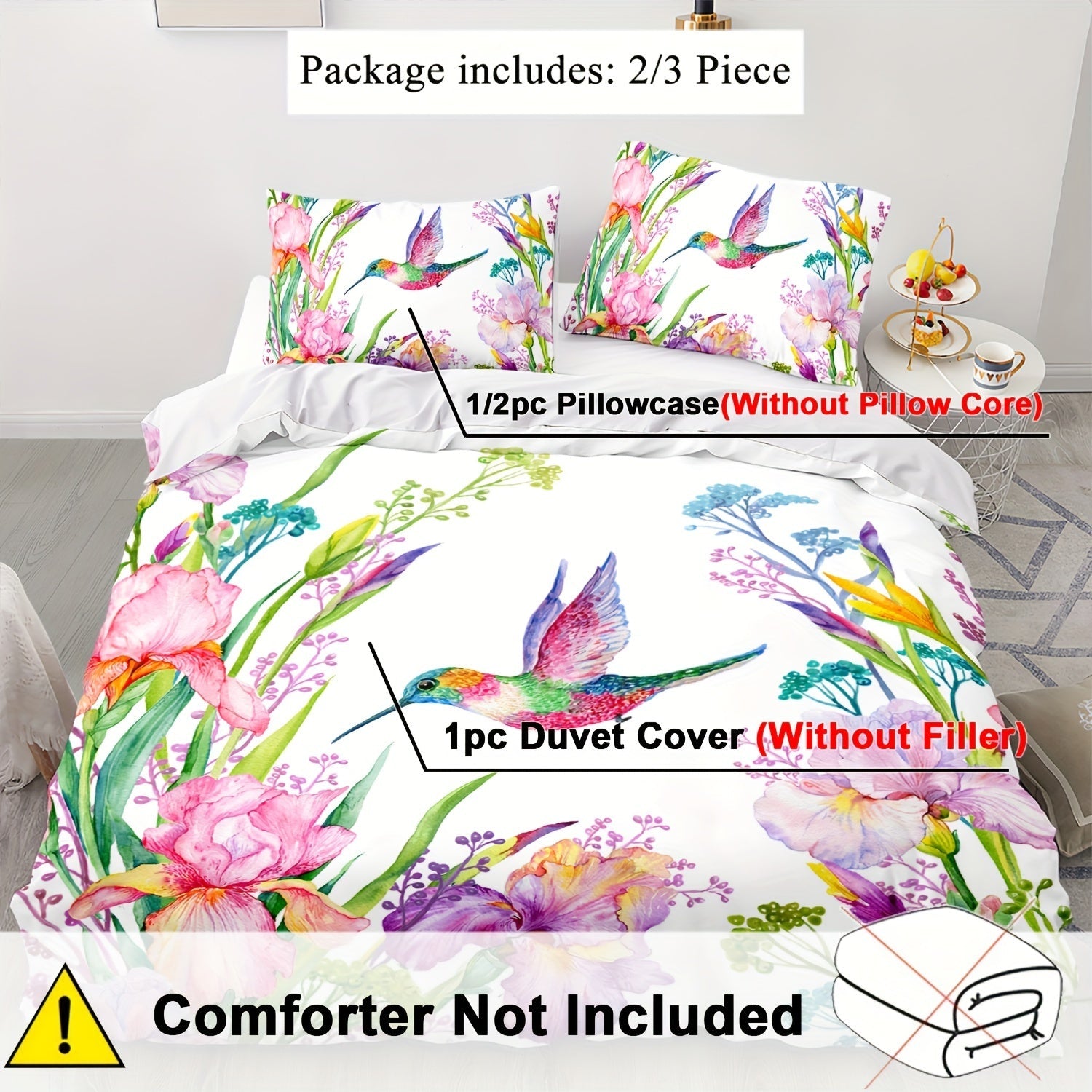 Blumenmuster Bettbezug Set – 2/3-teilig, Weich & Bequem, Frühlingsdesign