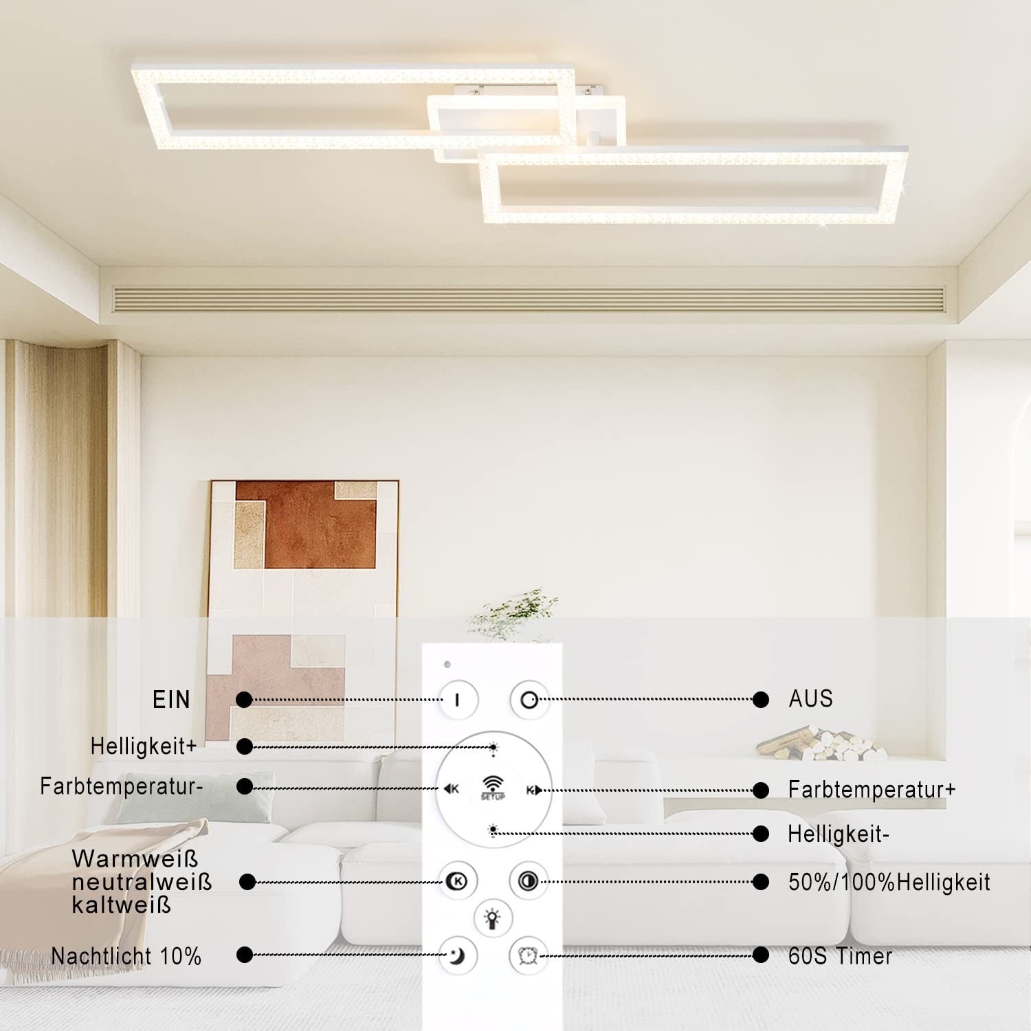 Verleihen Sie Ihrem Zuhause mit dieser dimmbare LED Deckenleuchte einen modernen und eleganten Touch. Perfekt für stilvolle Wohnräume, bietet diese Leuchte außergewöhnliche Funktionalität und Design.