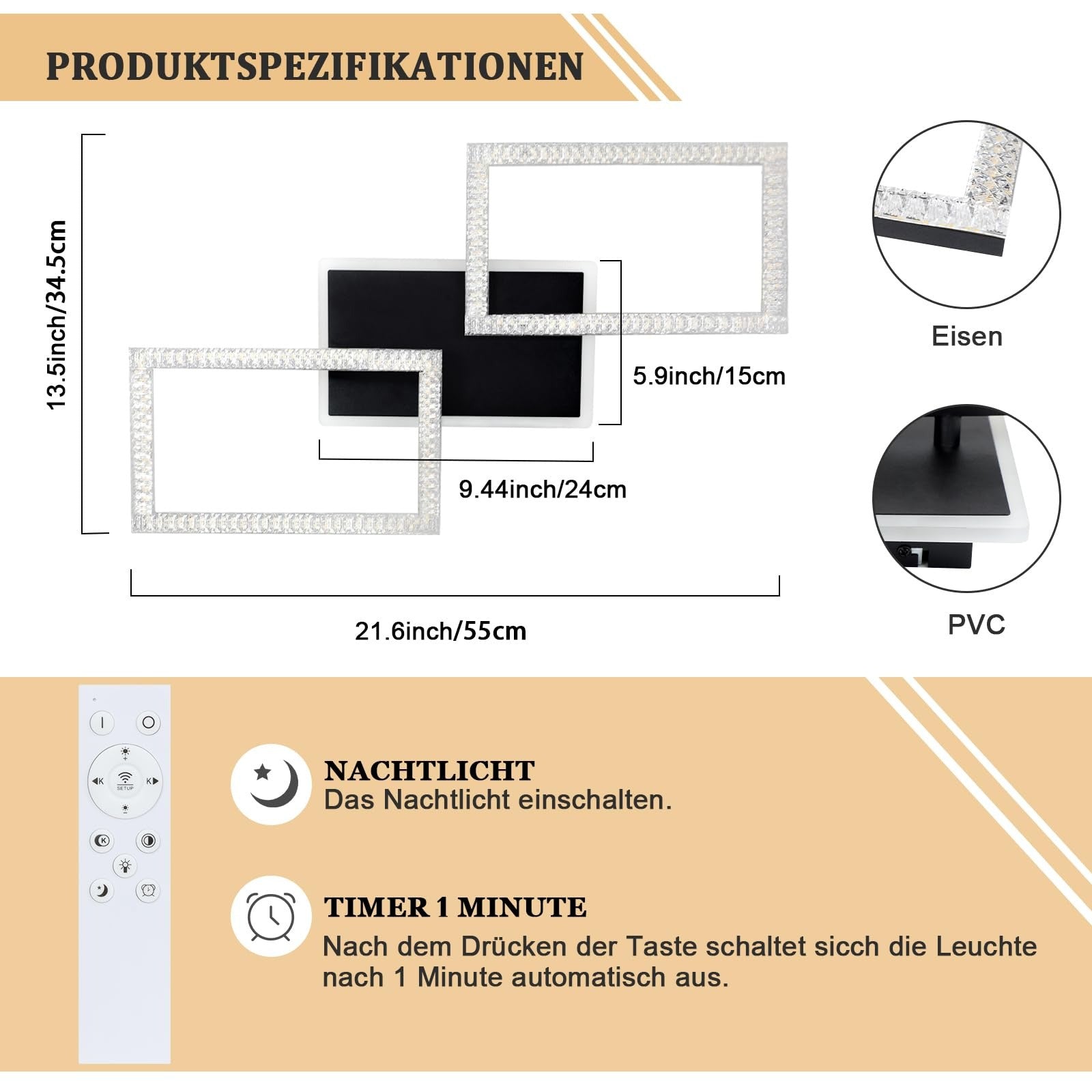 • Hochwertige Materialien: Metallrahmen kombiniert mit Kristallelementen für einen luxuriösen Look.