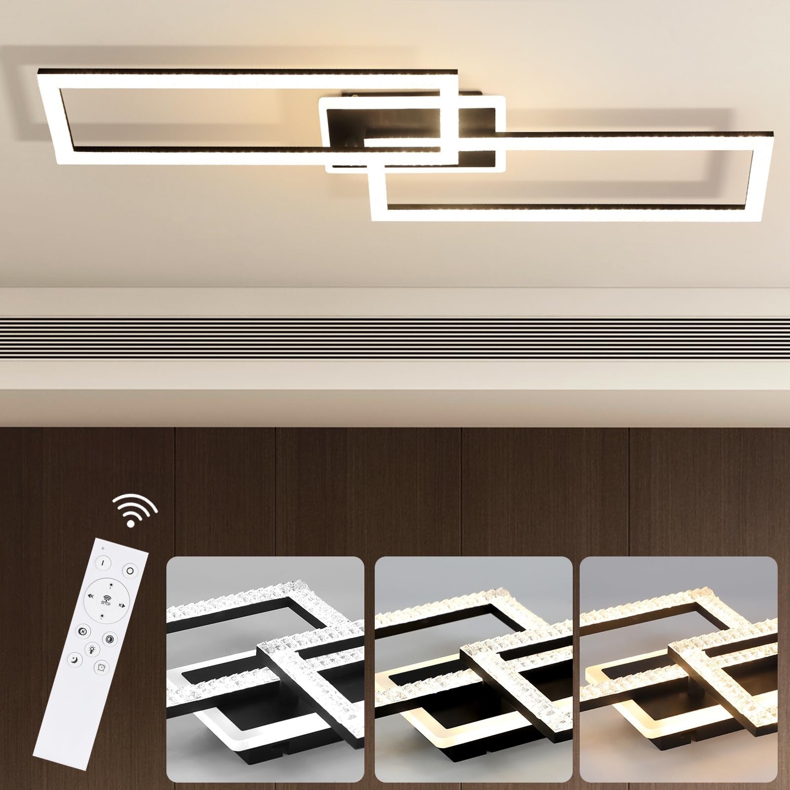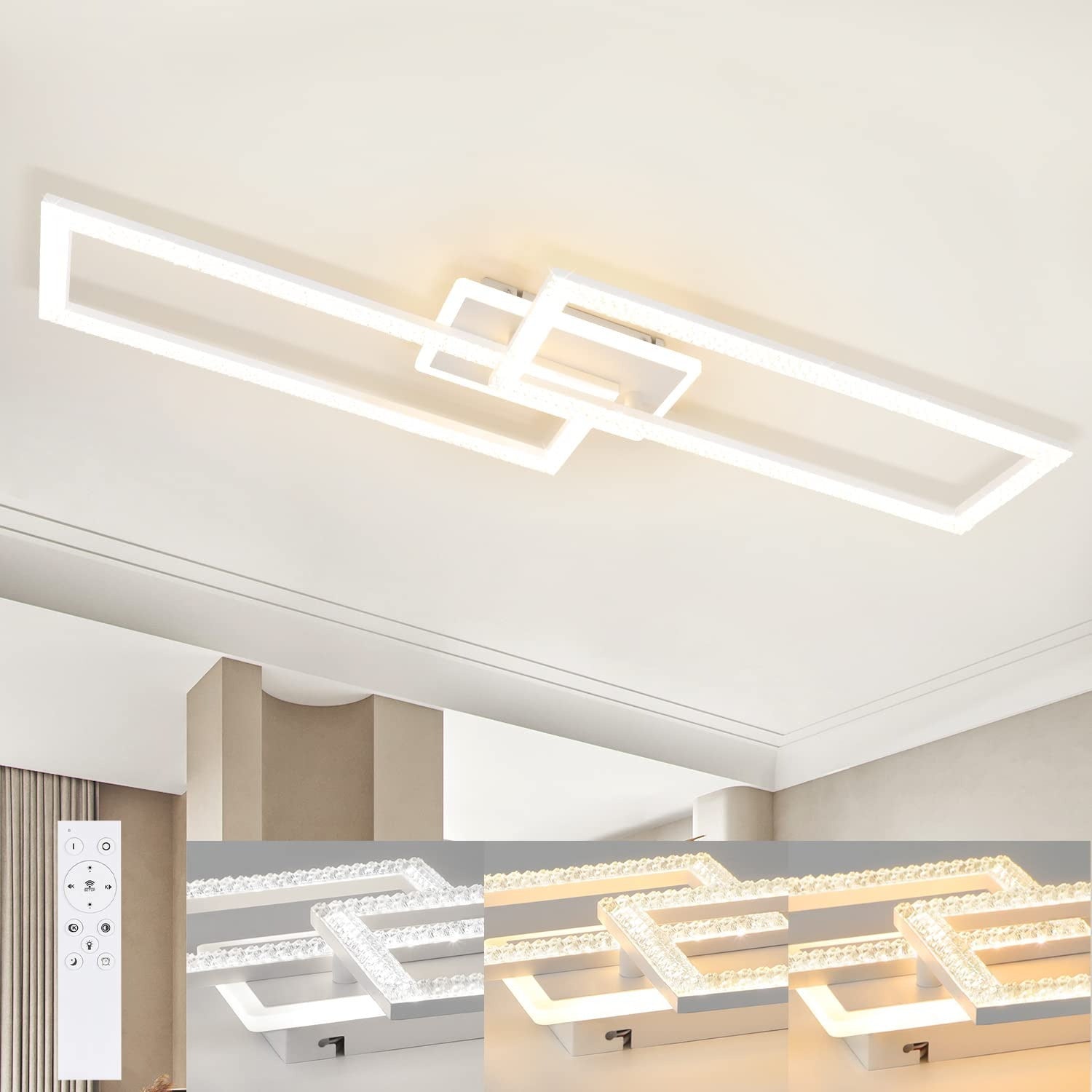 Dimmbare LED Deckenleuchte 46/56W, Modernes Design, Fernbedienung, Metall & Kristall