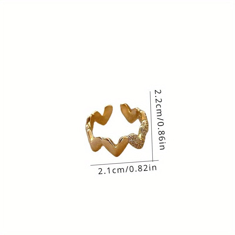Verleihen Sie Ihrem Look mit diesem minimalistischen Liebesherz-Ring einen Hauch von Eleganz. Aus hochwertigem Kupfer gefertigt, verfügt dieser verstellbare Ring über eine schicke goldfarbene Oberfläche und ist mit synthetischen Zirkonen verziert, die subtil und dennoch raffiniert glänzen. Das minimalistische Design macht ihn zu einem vielseitigen Accessoire für die Freizeit, das für jede Gelegenheit perfekt geeignet ist. Ob für einen besonderen Anlass oder einfach, um Ihrem Alltagsoutfit das gewisse Etwas zu verleihen, dieser Liebesherz-Ring wird bleibenden Eindruck hinterlassen. Ideal für diejenigen, die Einfachheit und Eleganz schätzen, wird dieses zeitlose Schmuckstück Ihren persönlichen Stil wunderbar ergänzen.