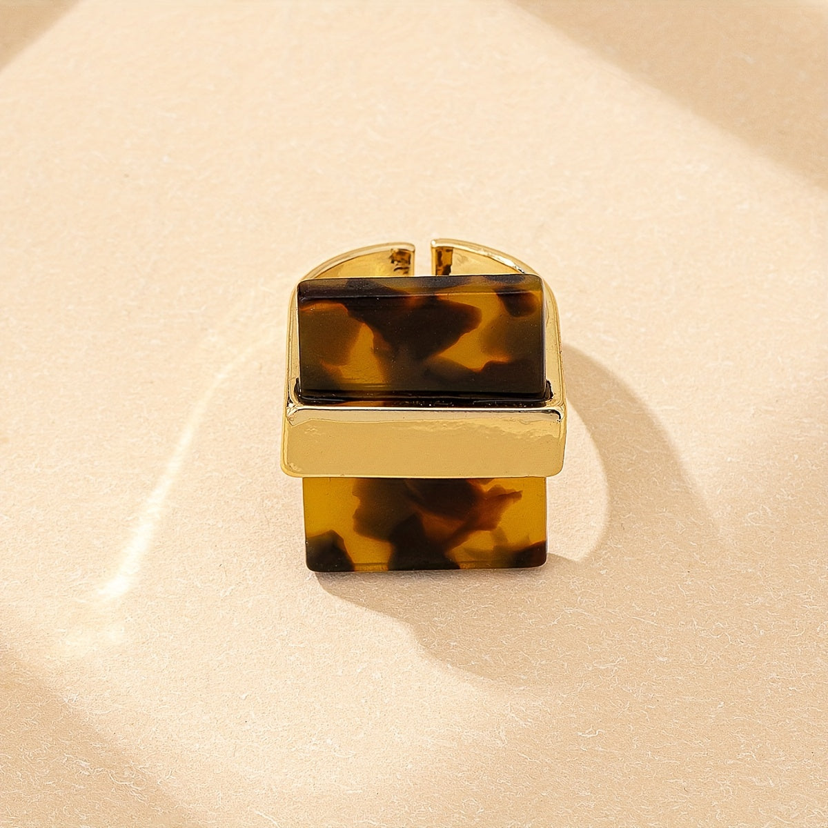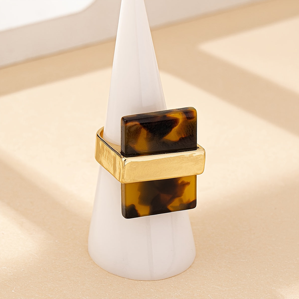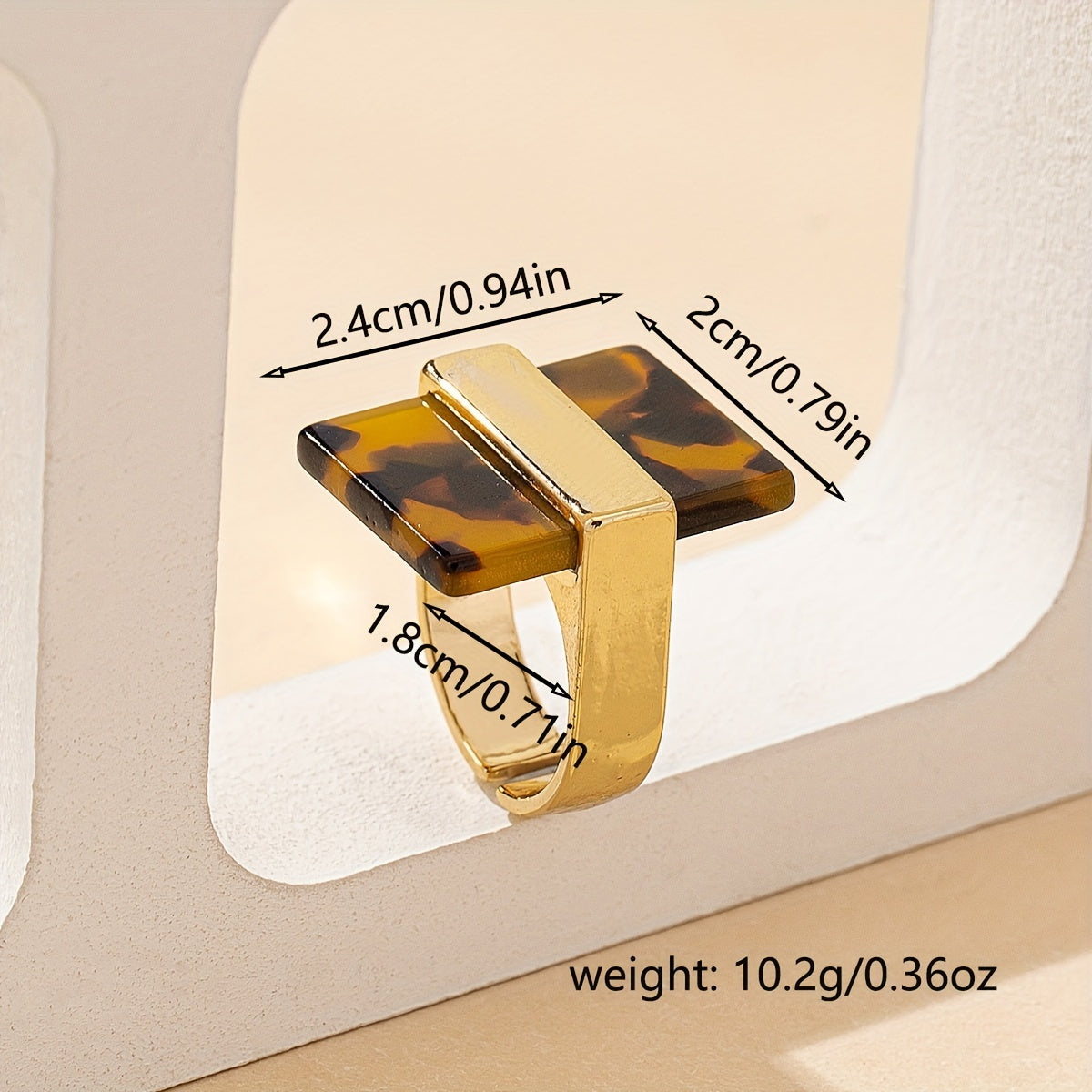 Dieser von der Vintage inspirierten geometrische Ring ist ein echtes Statement-Piece, das Ihrem täglichen Outfit Eleganz und Charme verleiht. Aus strapazierfähiger Legierung gefertigt und mit 14K Gold plattiert, bietet dieser Ring ein luxuriöses Finish. Das schicke Mosaikdesign mit Kunststoffeinlagen sorgt für eine einzigartige und auffällige Ästhetik. Die verstellbare Größe garantiert eine perfekte Passform für jeden Träger.