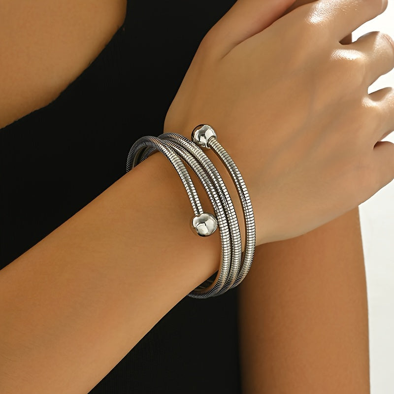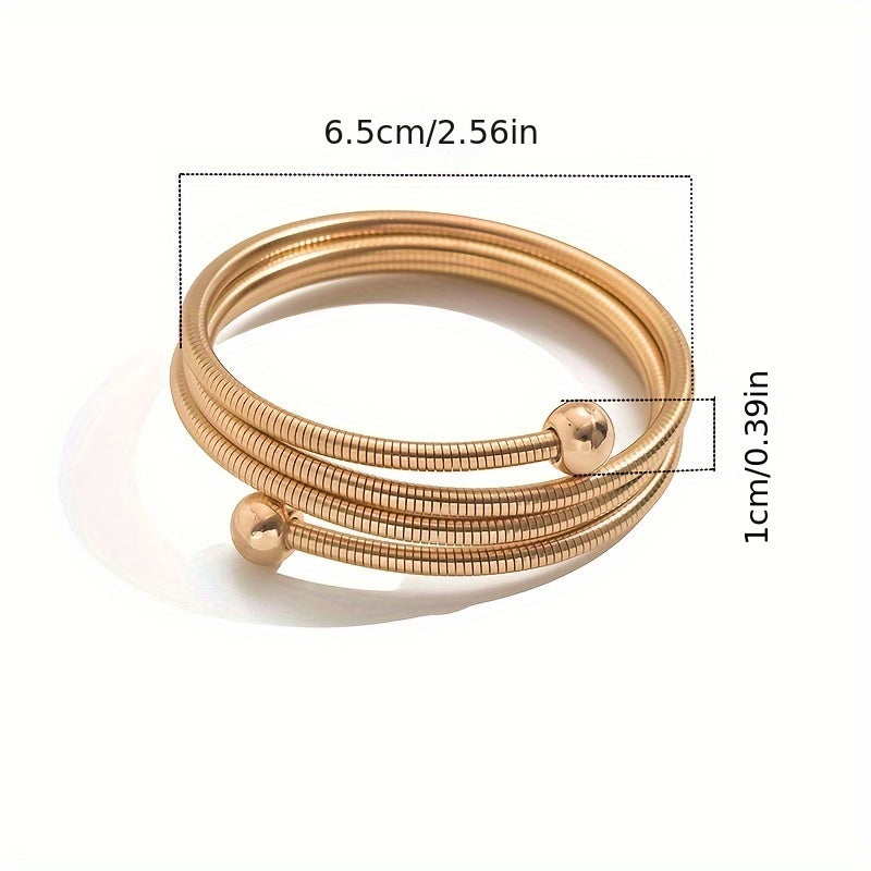 Dieses elegante goldfarbene verstellbare Mehrschicht-Armband ist die perfekte Ergänzung für Ihre Schmucksammlung. Es wurde mit einem schlichten minimalistischen Design entworfen und verfügt über dekorative Perlen, die genau die richtige Menge an Raffinesse verleihen. Das vielseitige Armband besteht aus strapazierfähigem Eisen, das Stärke und Langlebigkeit bietet und gleichzeitig leicht im Tragen bleibt. Das verstellbare Design sorgt für einen bequemen Sitz an jedem Handgelenk, was es ideal für den Alltag macht. Ob Sie sich für eine Party stylen oder Ihrem Alltagsoutfit ein dezentes, aber stilvolles Accessoire hinzufügen möchten, dieses Armband passt zu jedem Anlass. Sein einfaches, aber elegantes Design macht es zu einem vielseitigen Stück, das sich problemlos mit verschiedenen Outfits kombinieren lässt und Ihrem Look einen Hauch von Eleganz und Charme verleiht.