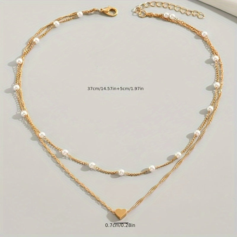Imitationsperlenkette mit Liebesanhänger Doppel-Lagen Halskette