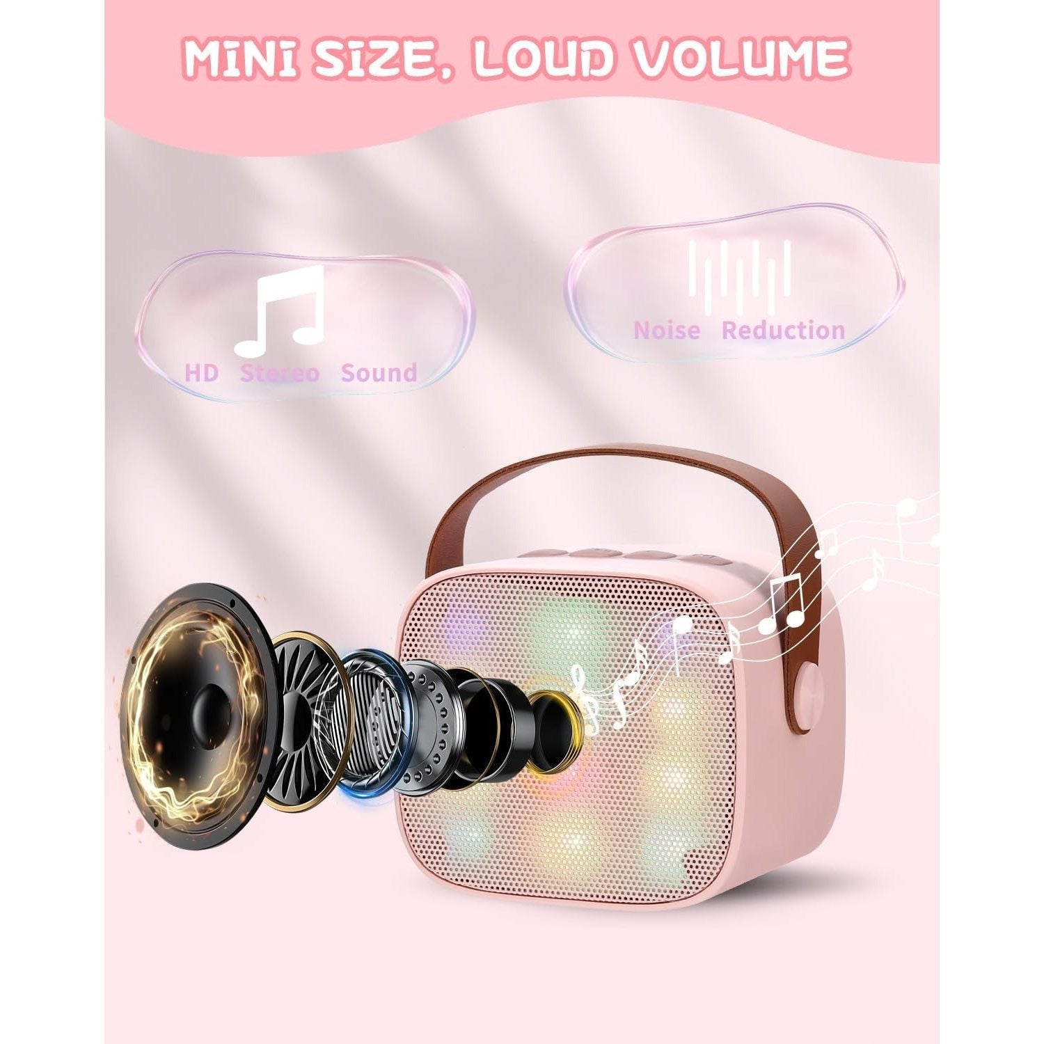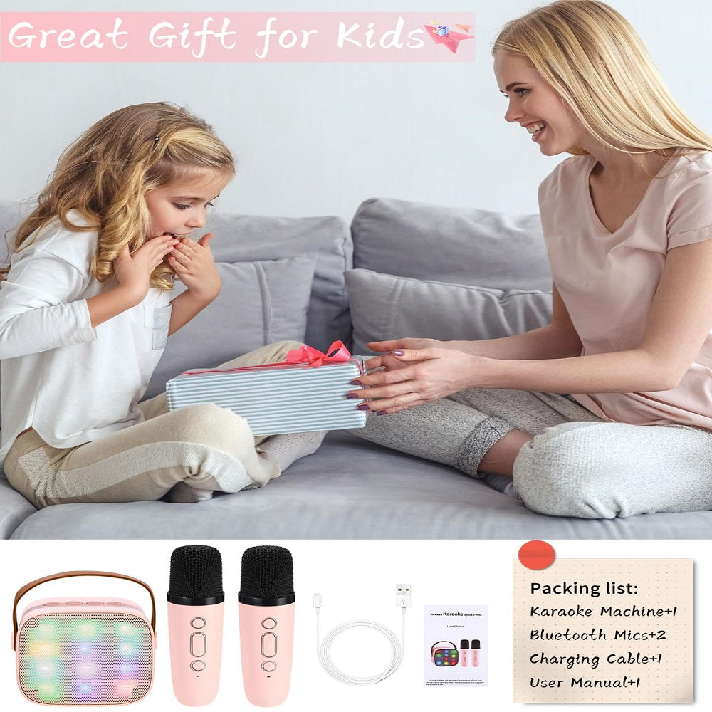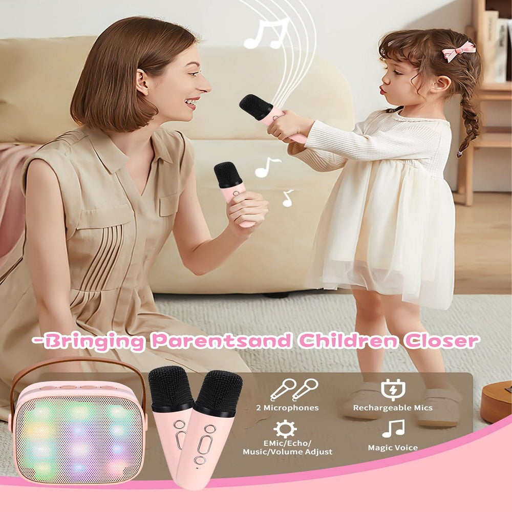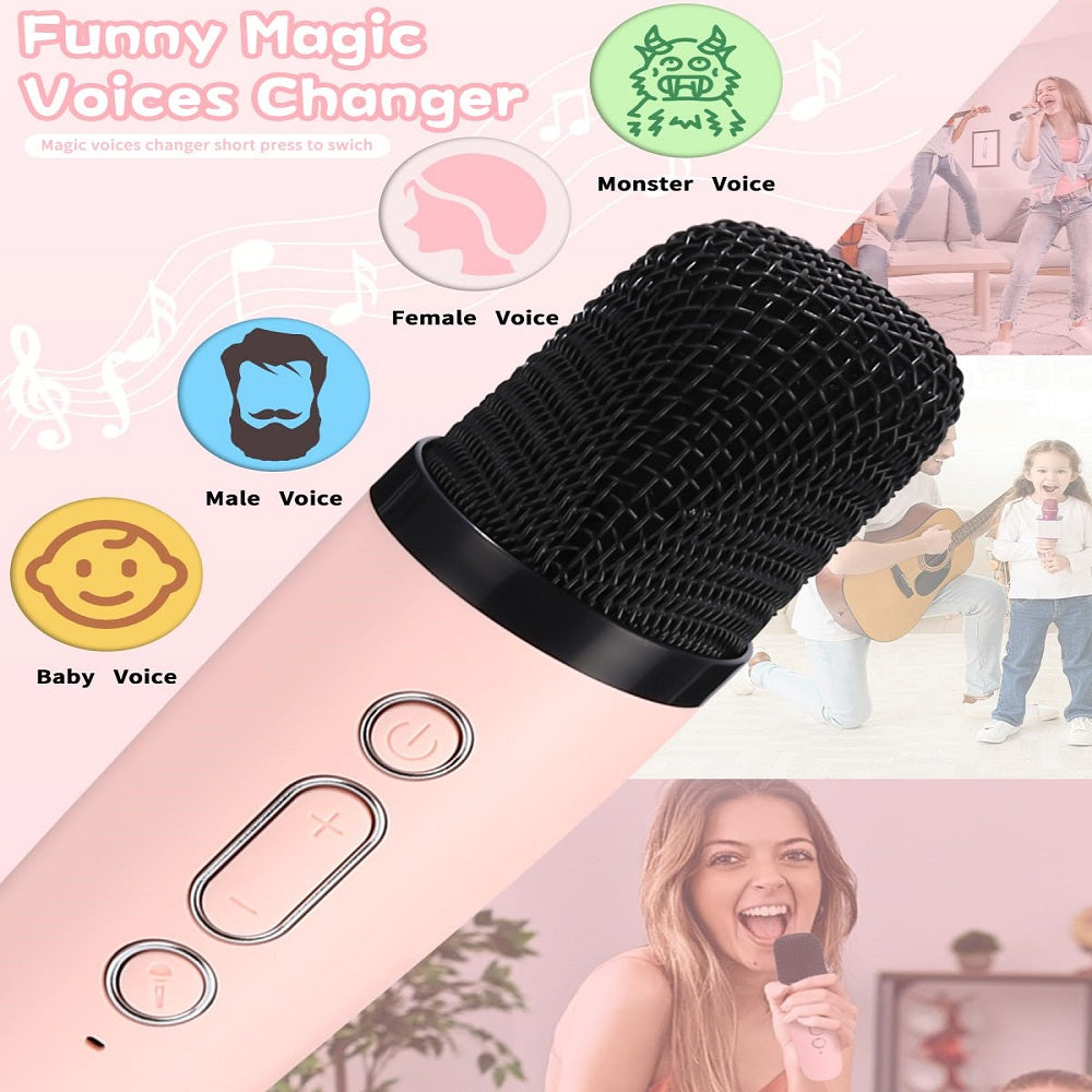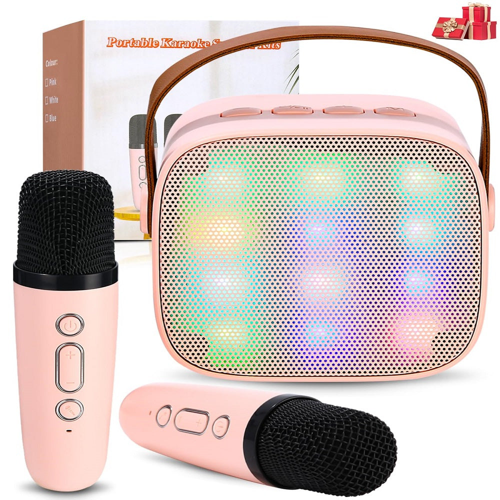 Die Karaoke-Maschine mit zwei Mikrofonen in stylischem Pink ist der perfekte Begleiter für unvergessliche Musikabende! Mit LED-Lichtern und Stimmveränderungsfunktionen sorgt sie für eine unvergessliche Party-Atmosphäre.