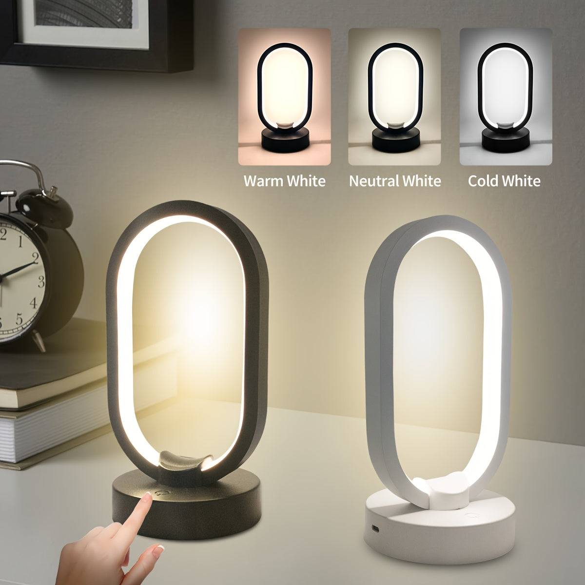 Die NewAoNaSen Moderne LED Ovale Schreibtischlampe ist eine stilvolle und funktionale Beleuchtungslösung, die perfekt für jeden Raum geeignet ist. Mit einem eleganten Kunststoffdesign und der Uplight-Beleuchtung bietet diese Lampe ein sanftes und angenehmes Licht, ideal zum Lesen oder um eine gemütliche Atmosphäre zu schaffen. Ihr moderner, vom Weltraum inspirierten Stil verleiht Ihrem Schlafzimmer, Wohnzimmer oder Café eine elegante Note. Die Lampe wird von einem wiederaufladbaren Lithium-Akku betrieben, sodass kein Stecker benötigt wird, was sie tragbar und bequem macht. Die Touch-Steuerung ermöglicht eine einfache Helligkeitsanpassung und bietet dreifarbige dimmbare Beleuchtung, die sich Ihren Bedürfnissen anpasst. Mit ihrer einzigartigen Form und vielseitigen Gestaltung ist diese Lampe eine großartige Ergänzung für jeden Raum. Sie ist ein praktisches und durchdachtes Geschenk für Geburtstage oder Feiertage.