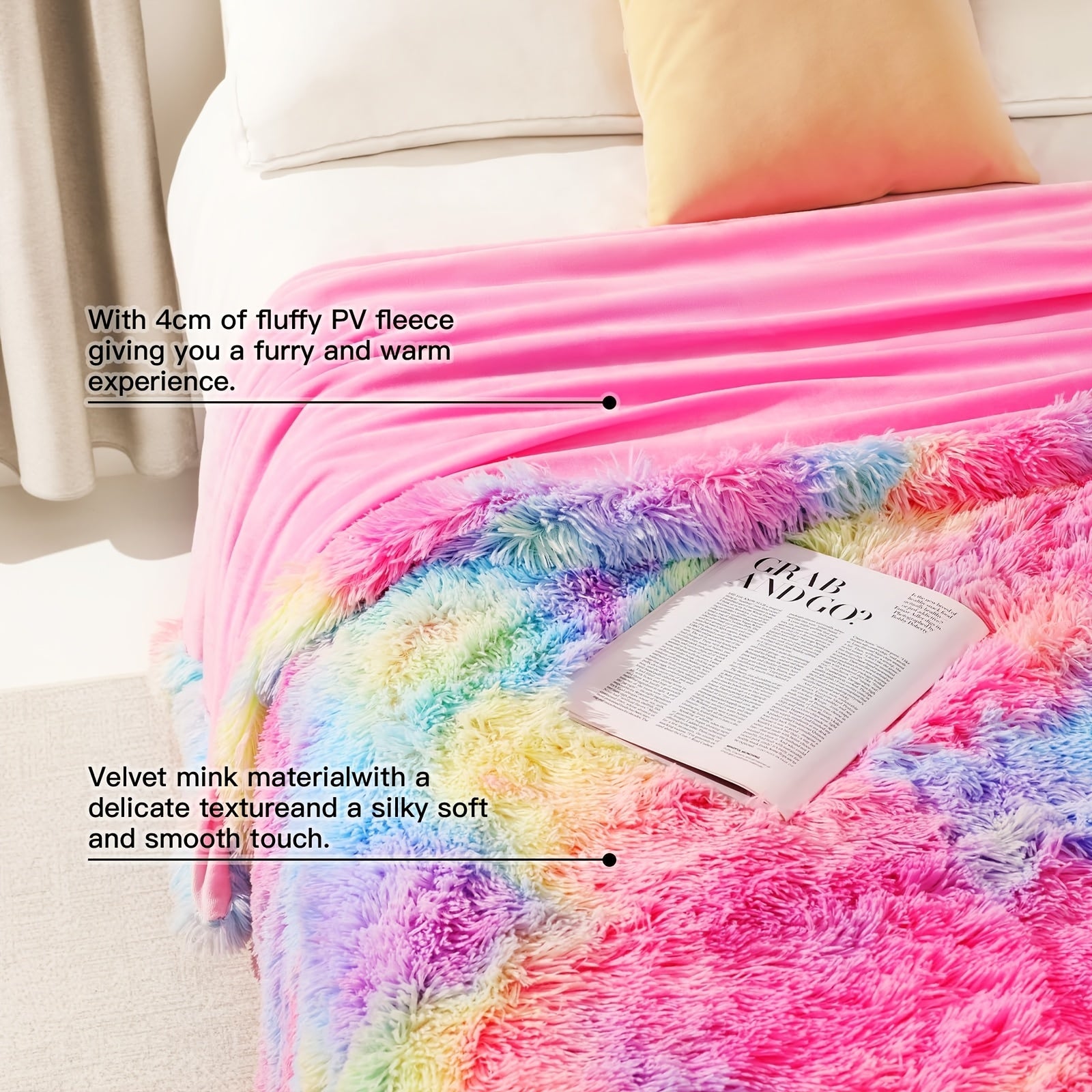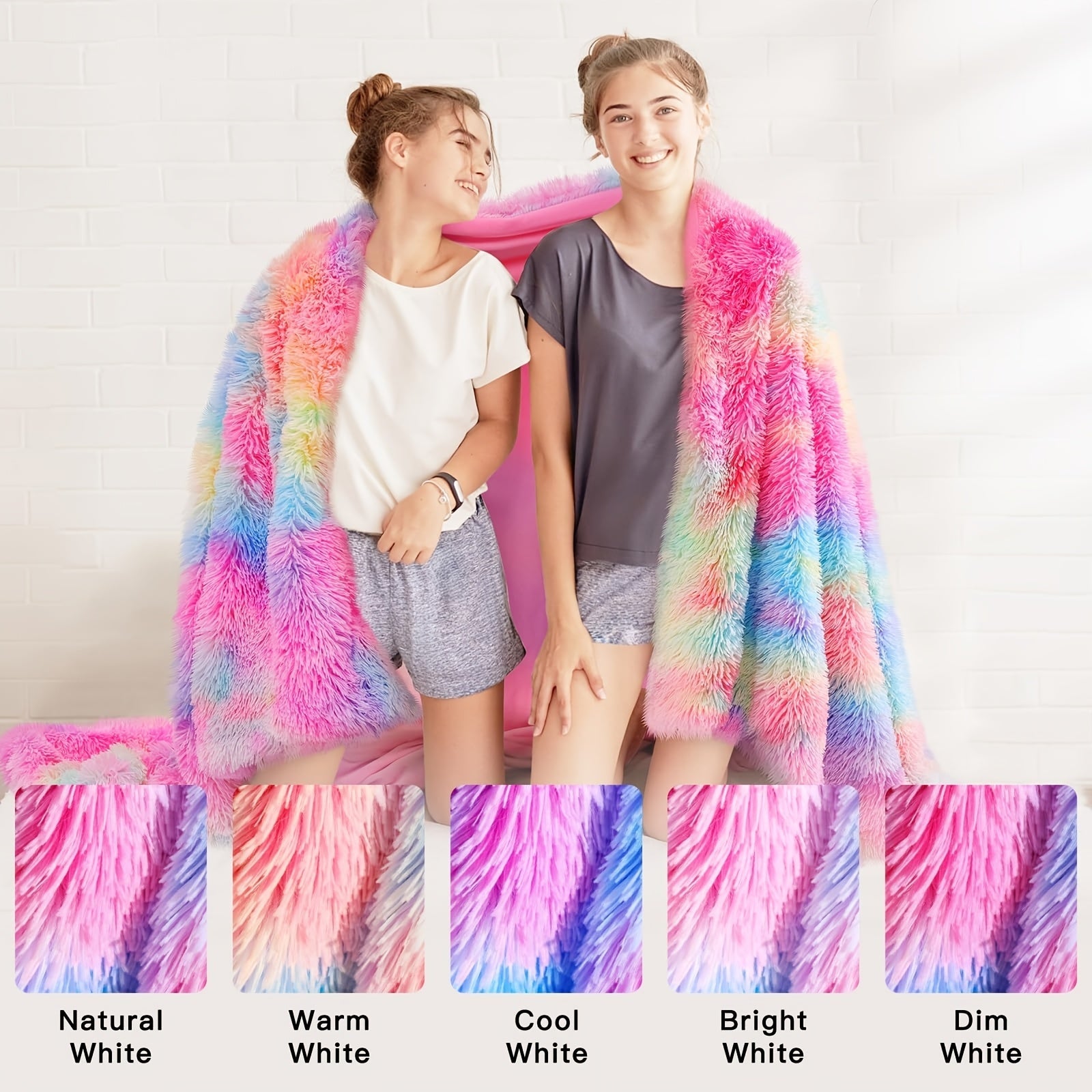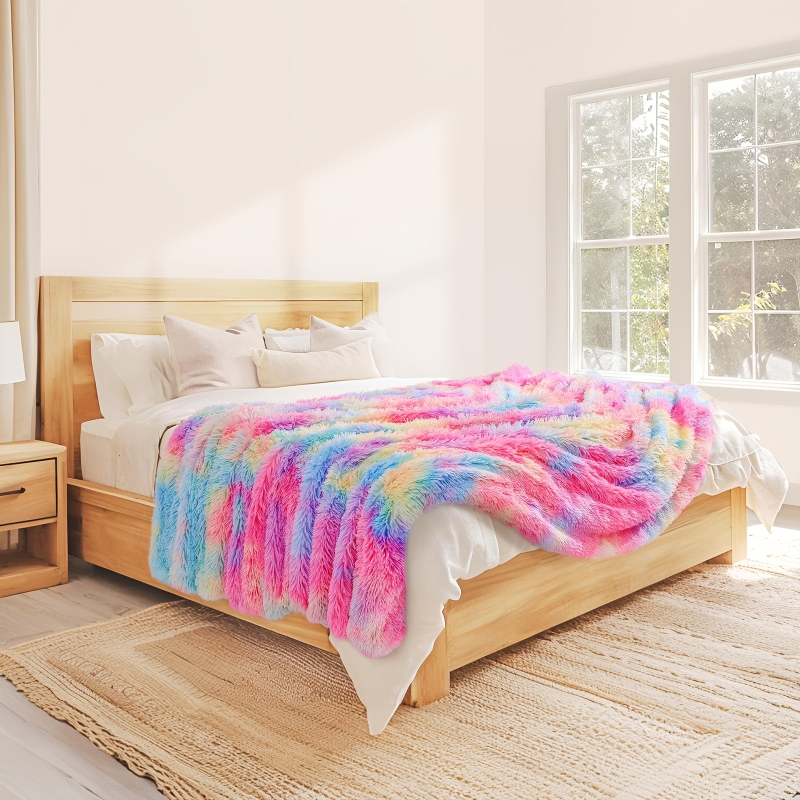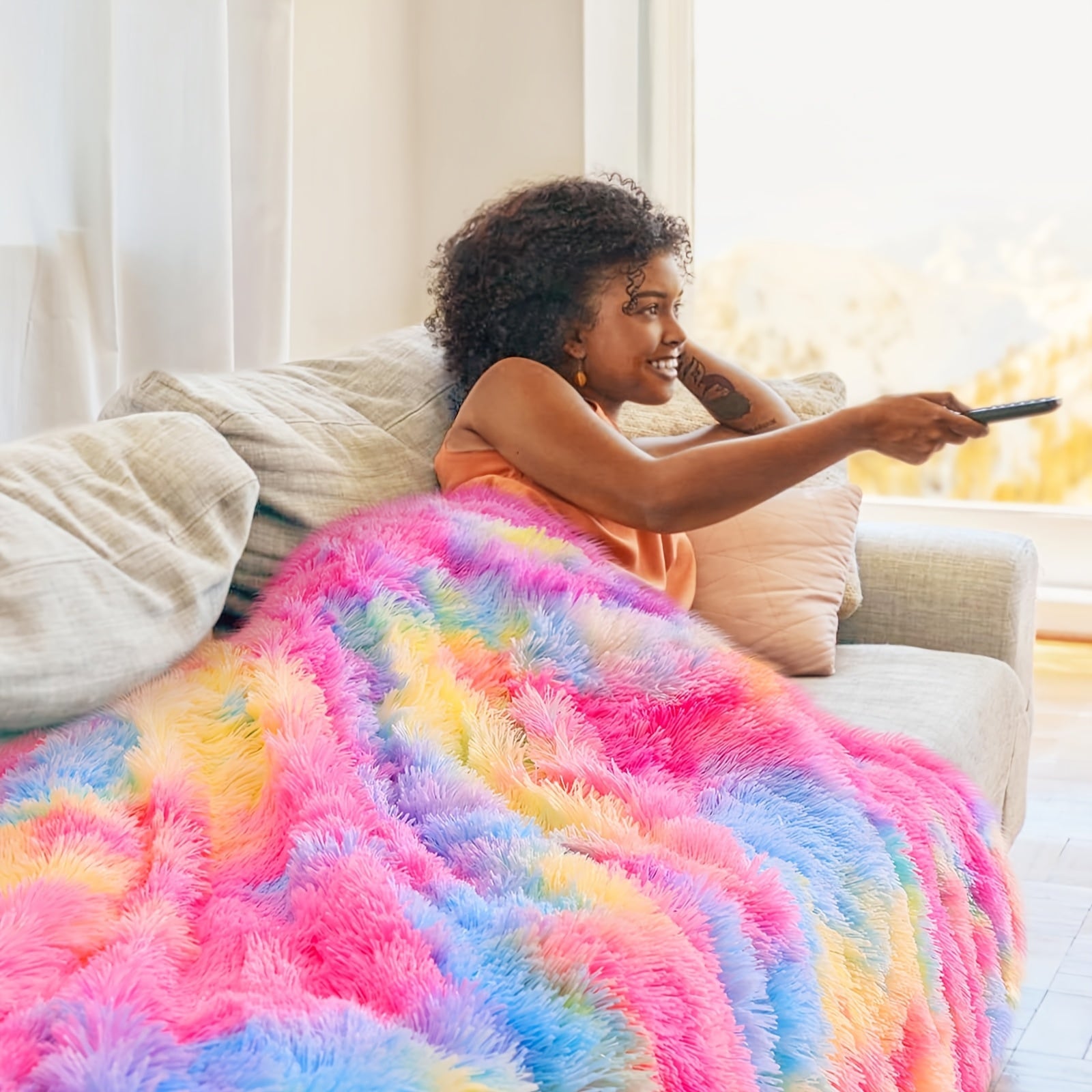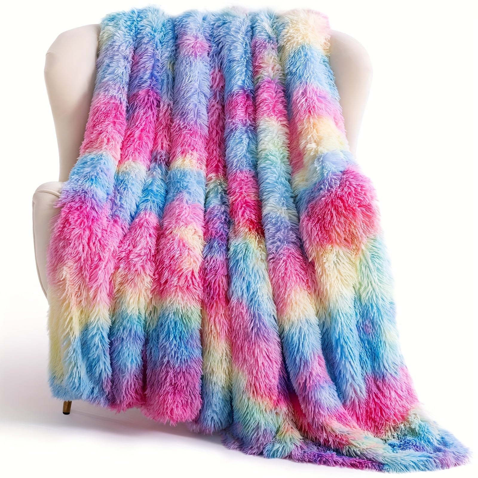 Verleihen Sie Ihrem Zuhause einen Hauch von Farbe und Gemütlichkeit mit der Regenbogen-Kunstpelz-Decke. Perfekt für Sofa oder Bett, bietet diese Decke ultimativen Komfort und Stil.