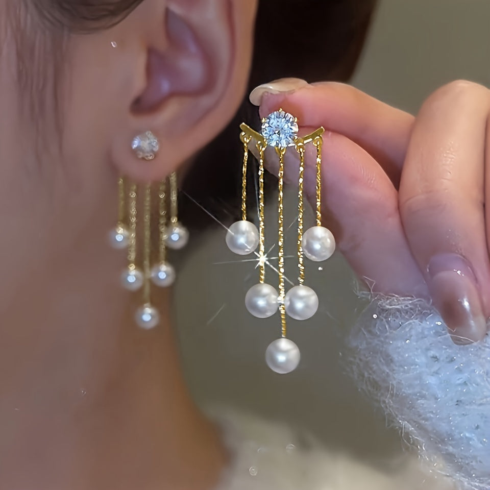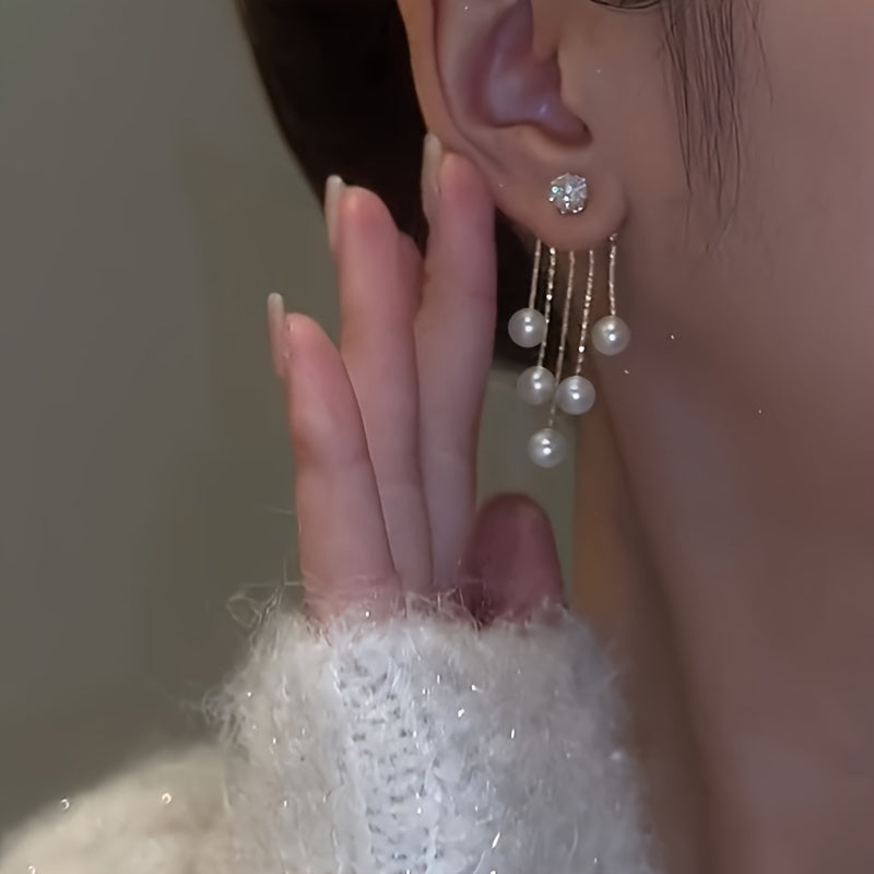 Rhinestone-Imitatperlen-Tassel-Stud-Ohrringe für Damen