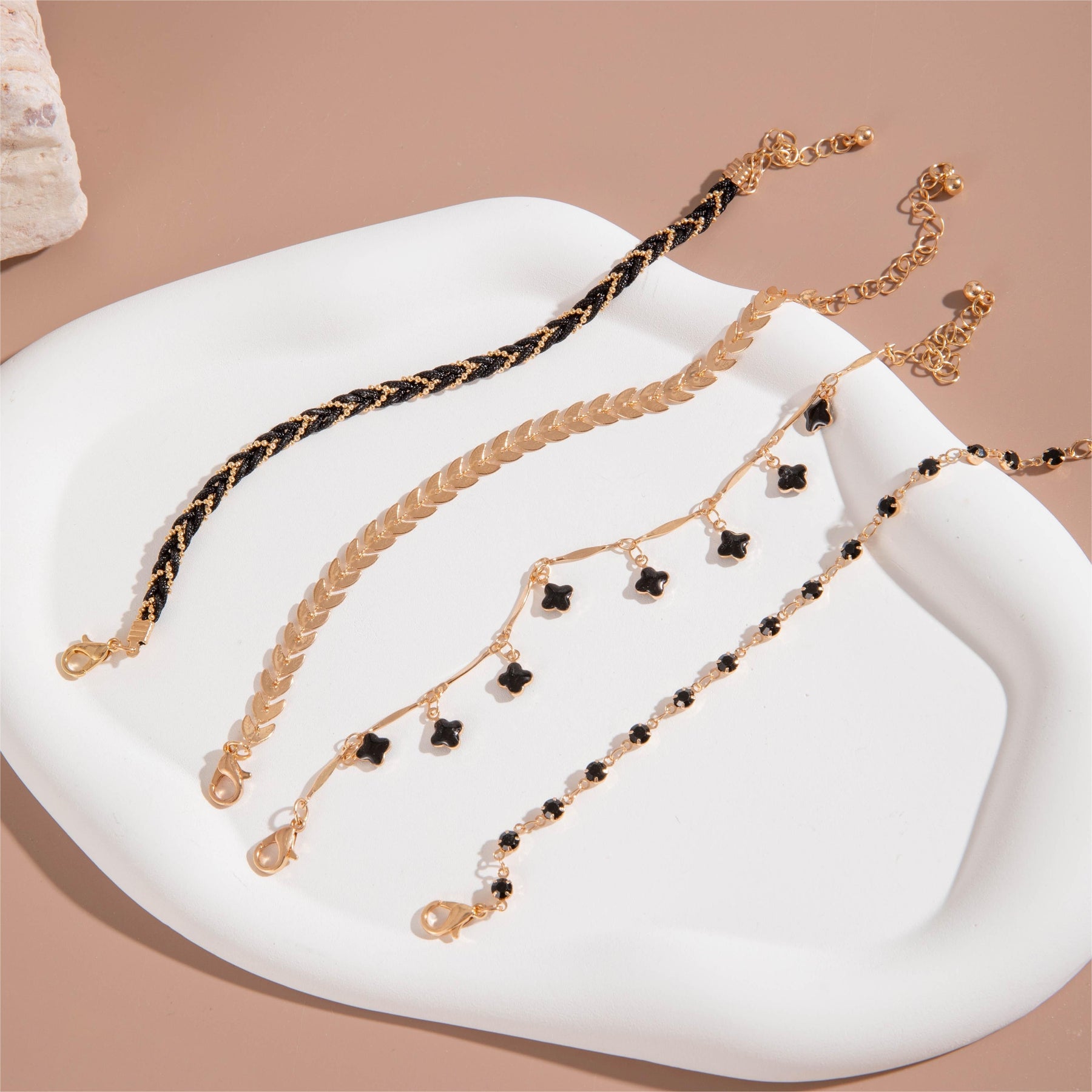 Dieses 4-teilige Armband-Set mit schwarzen dünnen Ketten bietet ein gewagtes, vom Hip-Hop inspiriertes Design, das jedem Outfit einen coolen, kantigen Akzent verleiht. Hergestellt aus strapazierfähiger Zinklegierung, sind diese Armbänder für den täglichen Gebrauch konzipiert und setzen ein Statement. Der Tribal-Stil verleiht ihnen einen einzigartigen und kulturellen Flair, perfekt für modebewusste Frauen, die es lieben, gewagte Accessoires zu tragen. Die Armbänder sind leicht, aber stark und bieten einen komfortablen Sitz für den ganzen Tag. Ob für eine Party oder als trendiges Accessoire für den Alltag, diese Armbänder sind die perfekte Wahl, um Ihr Ensemble zu vervollständigen. Ihre elegante schwarze Farbe und das detaillierte Design verleihen ihnen eine moderne, stilvolle Ausstrahlung, die in jeder Umgebung hervorsticht.