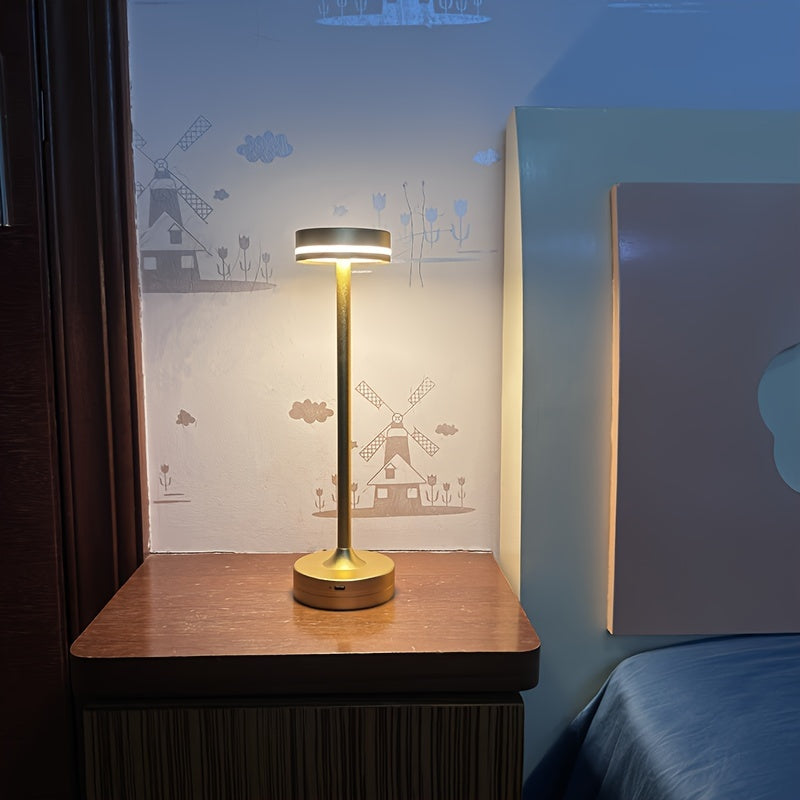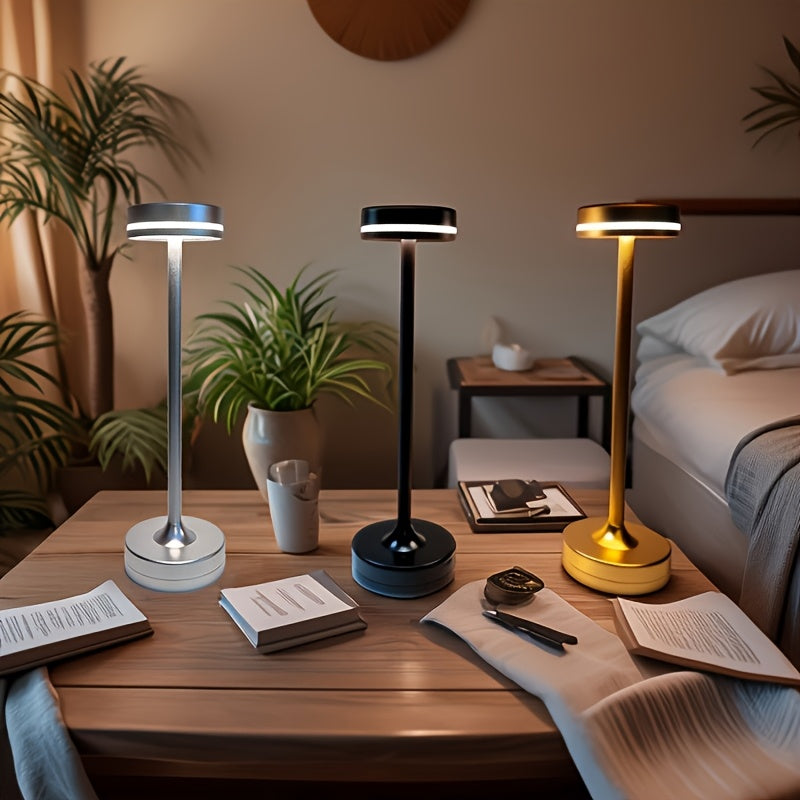 Touch-LED Tischlampe – Wiederaufladbar, 3 Farben dimmbar, Metall, Tragbar