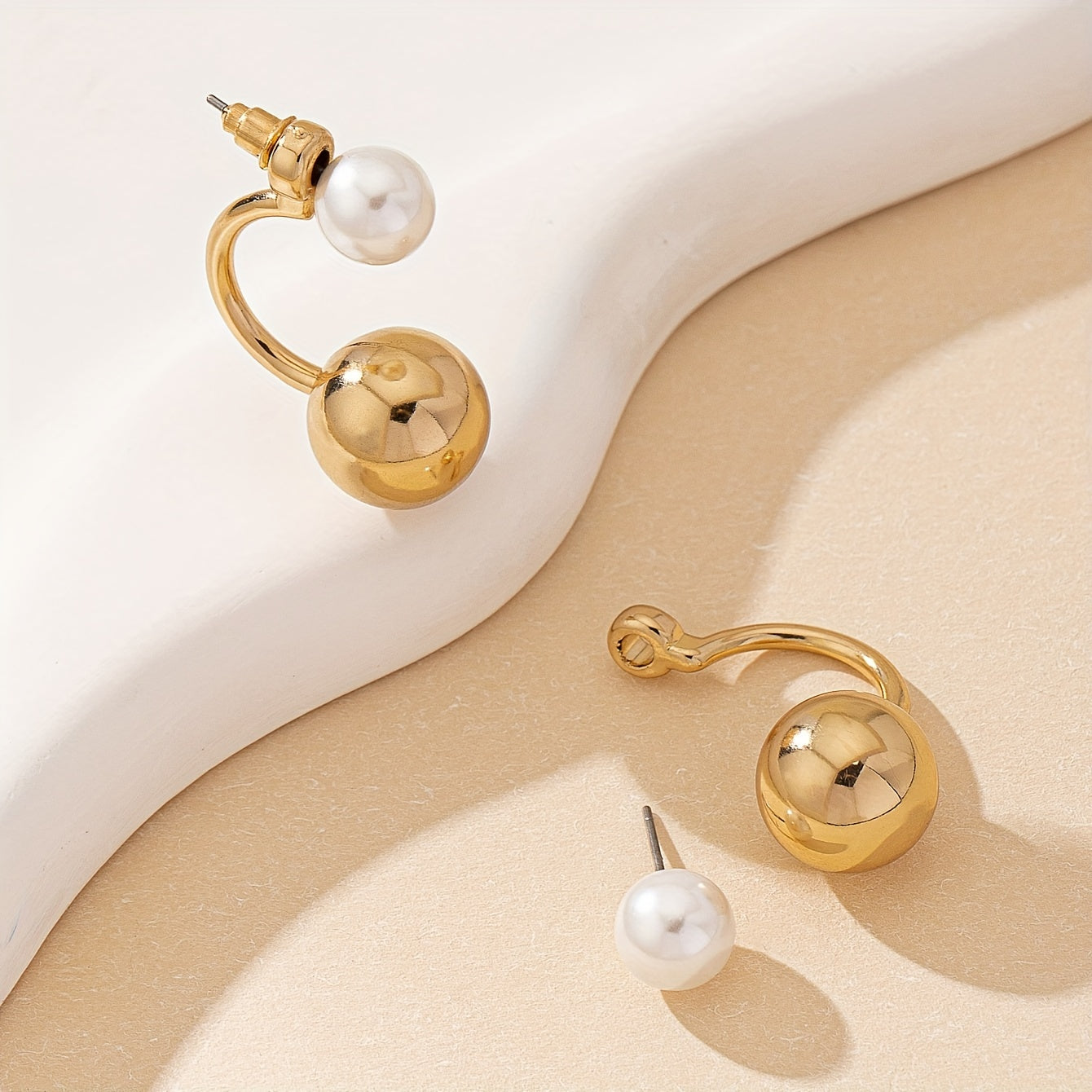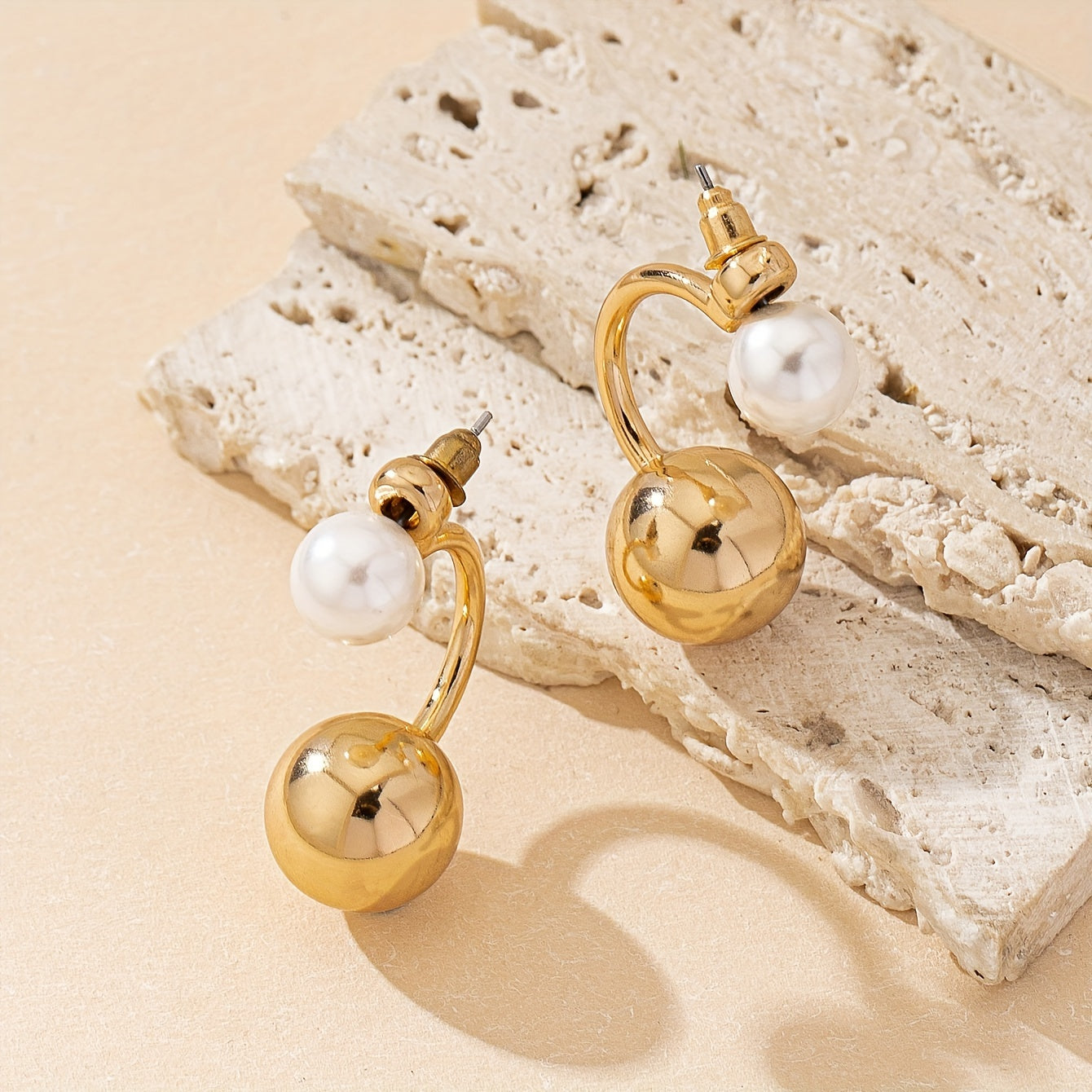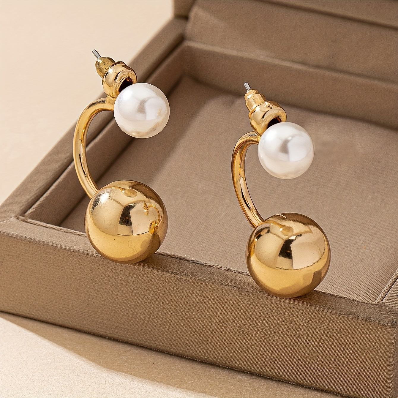 Vintage Elegante 14K Goldplattierte Imitationsperlen Ohrstecker