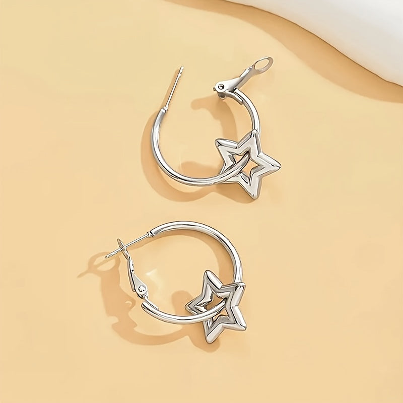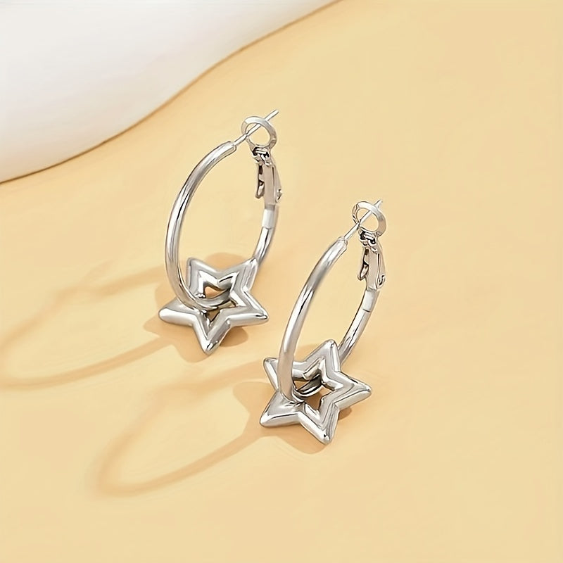 1 Paar Edelstahl Goldbeschichtete Kreisohrringe mit Stern