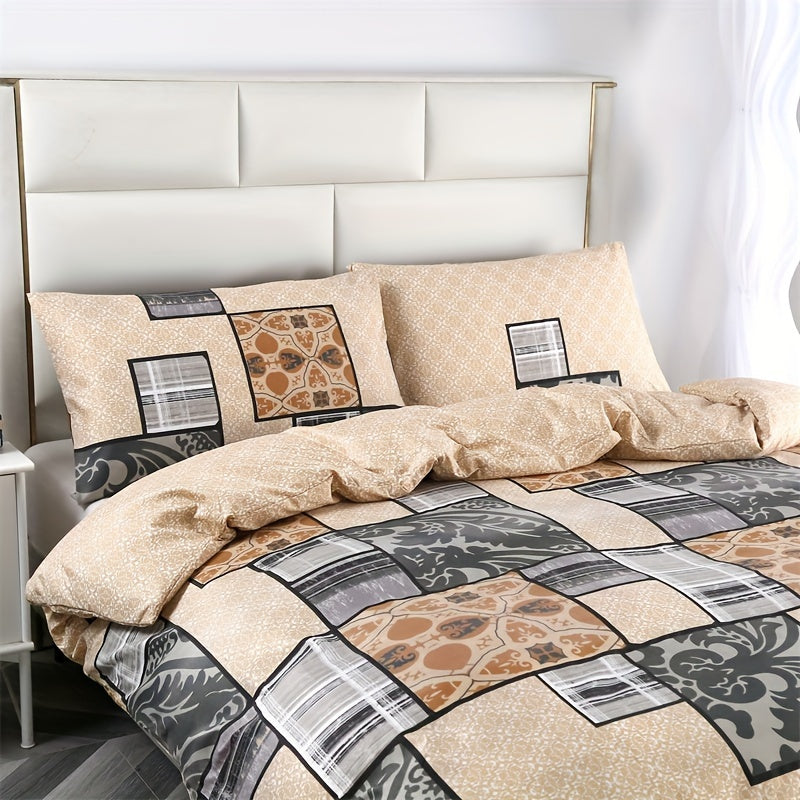 3-teiliges Bettbezug Set – Karo & Blumenmuster, Atmungsaktiv, Maschinenwaschbar