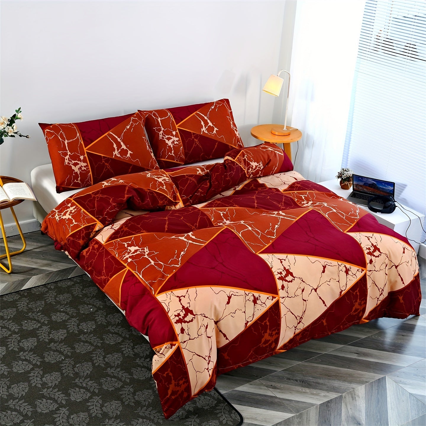 3-teiliges Bettwäsche-Set, Geometrischer Dreieck-Druck, Weich & Bequem