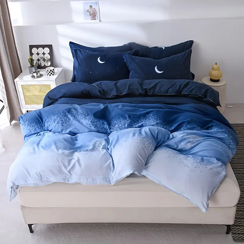 3-teiliges Bettwäsche-Set mit Monddruck Nachthimmel