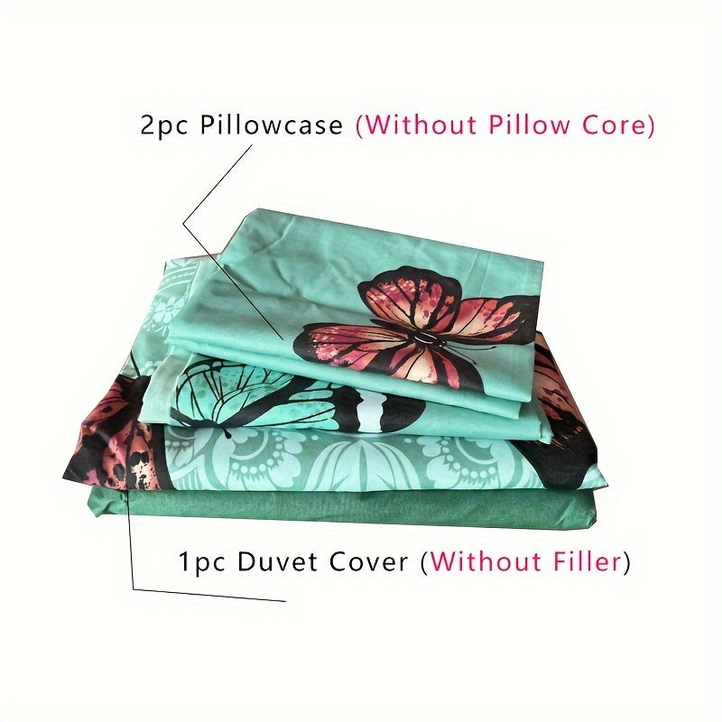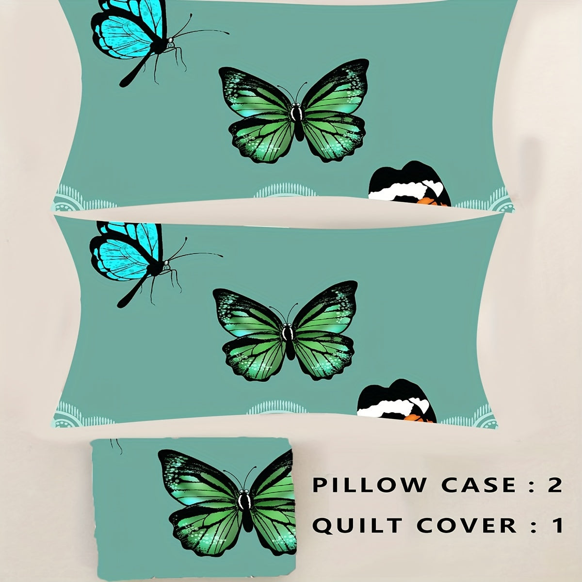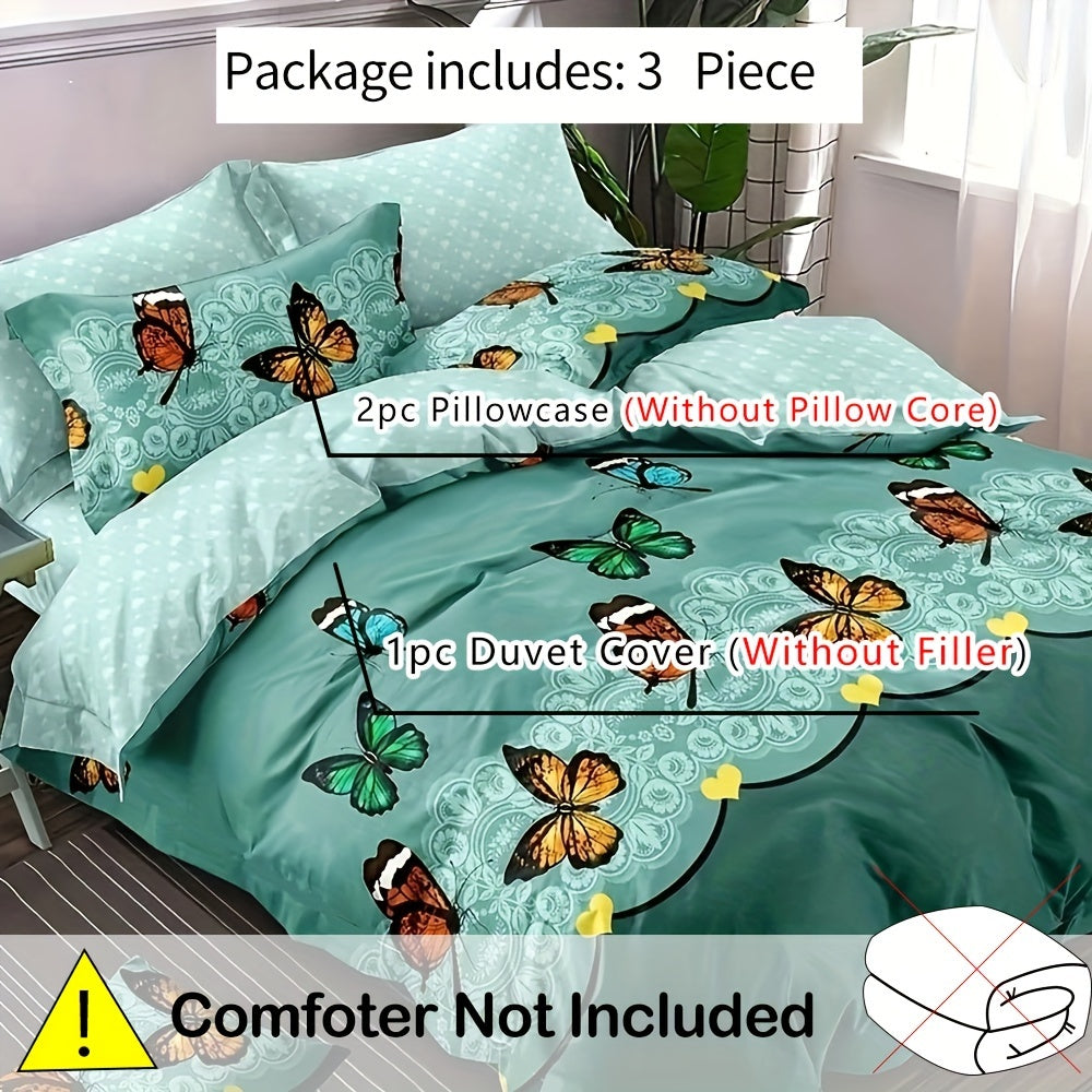 3-teiliges Bettwäsche-Set mit Schmetterlingsmuster, Atmungsaktiv, Weich & Bequem