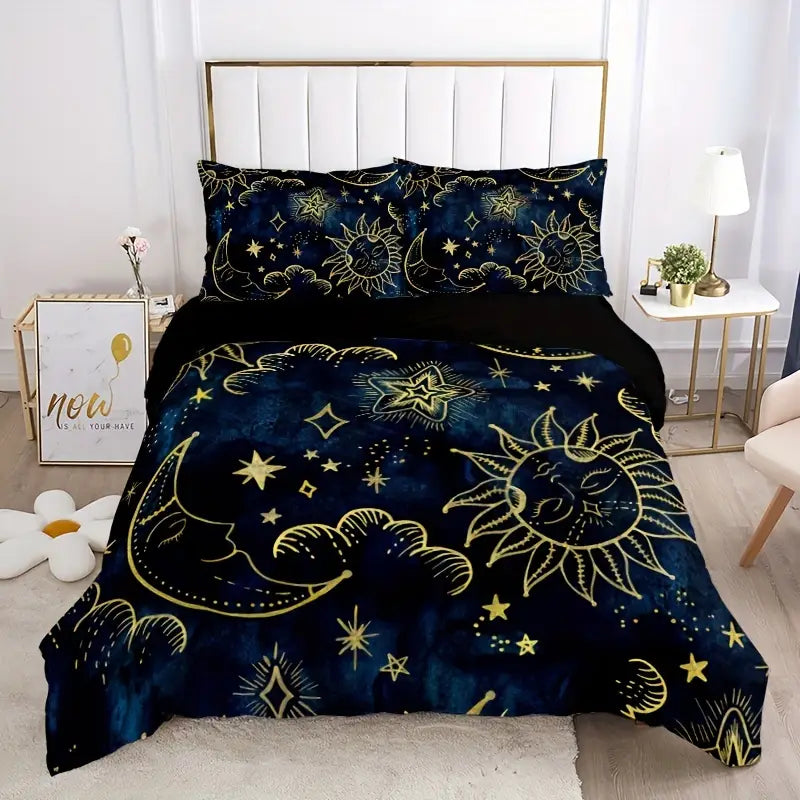 3-teiliges Celestial Sonne & Mond Sternen Bettwäsche-Set