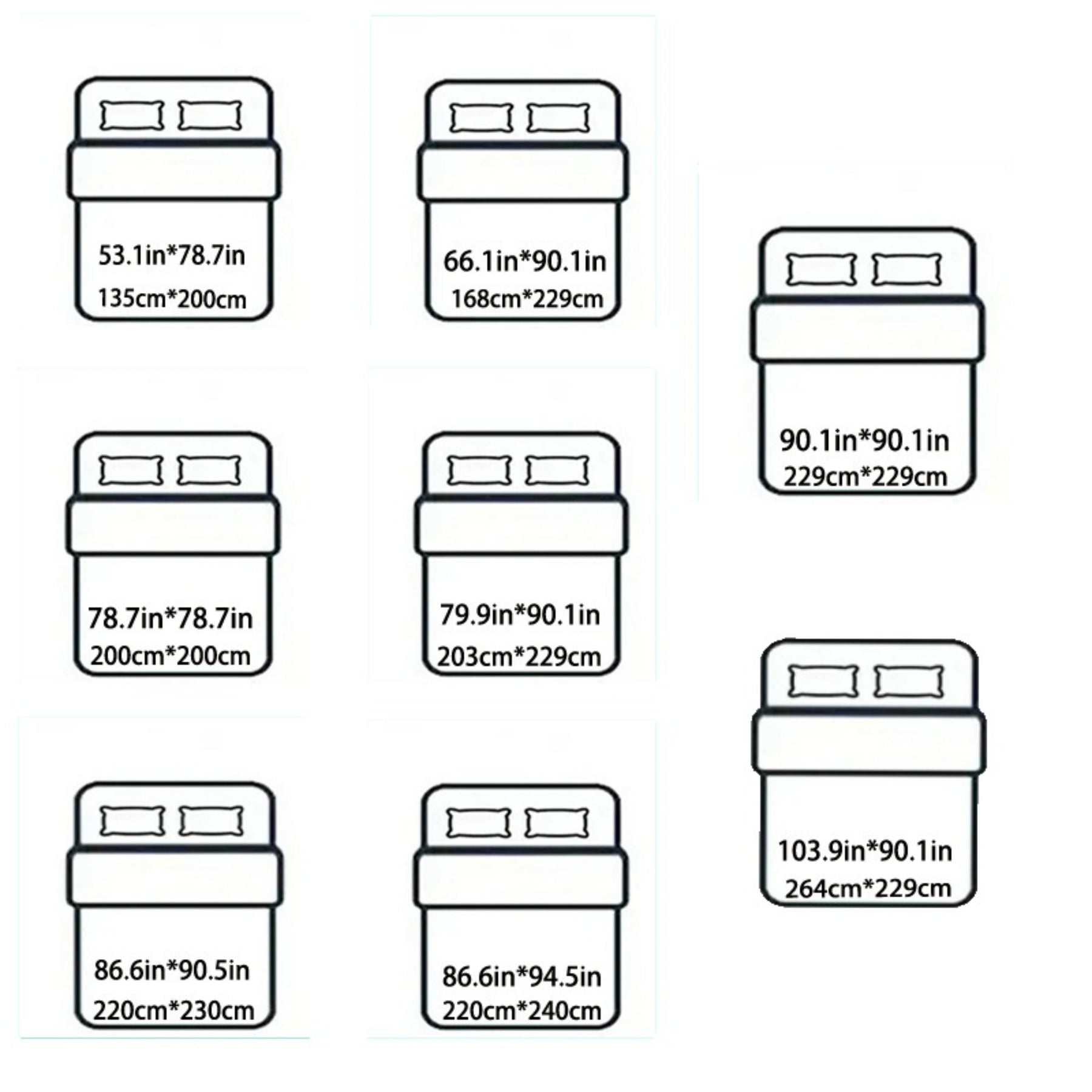 | Queensize(229cm*229cm) | 229 | 229 |