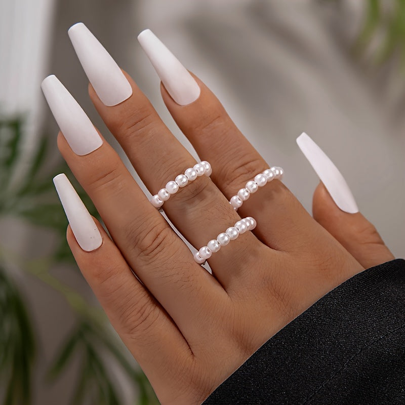 3er Set Klassische Stapelbare Perlenringe Aus Kunstperlen,