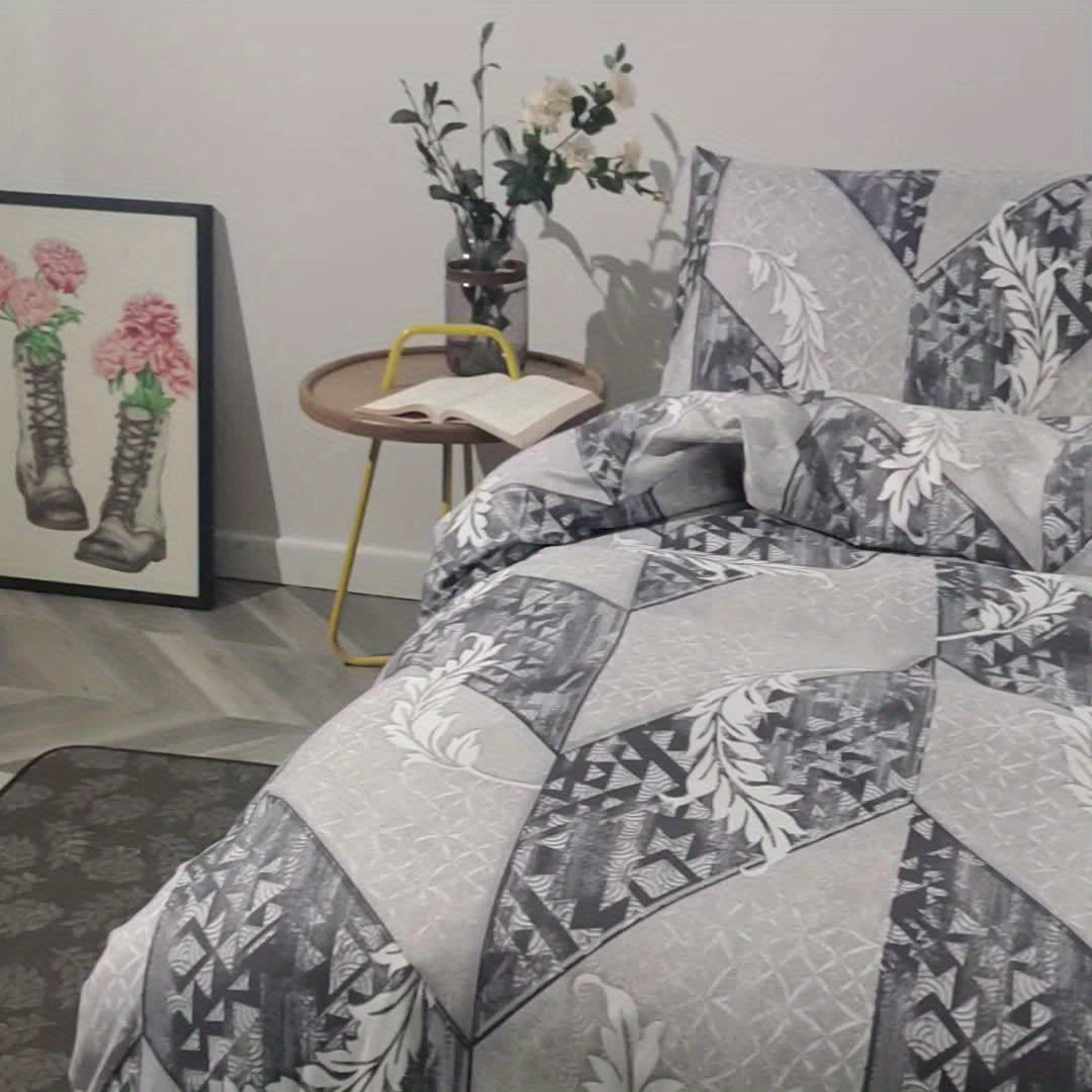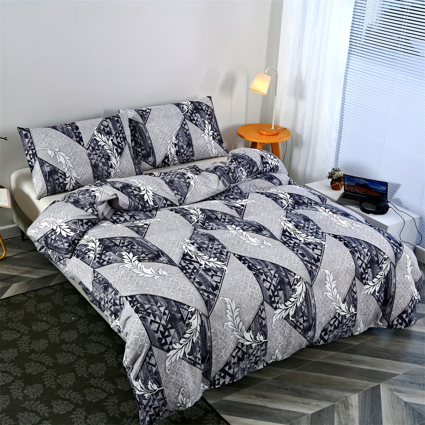 Dieses 3-teilige Bettwäscheset mit geometrischem Diamant-Steppdesign bietet einen stilvollen und komfortablen Akzent für jedes Schlafzimmer. Es enthält einen Bettbezug und Kissenbezüge, die mit einem langlebigen Reißverschluss zum einfachen Gebrauch ausgestattet sind. Das geometrische Muster kombiniert mit einem Pflanzen- und Grasblattdruck sorgt für einen modernen und erfrischenden Look.