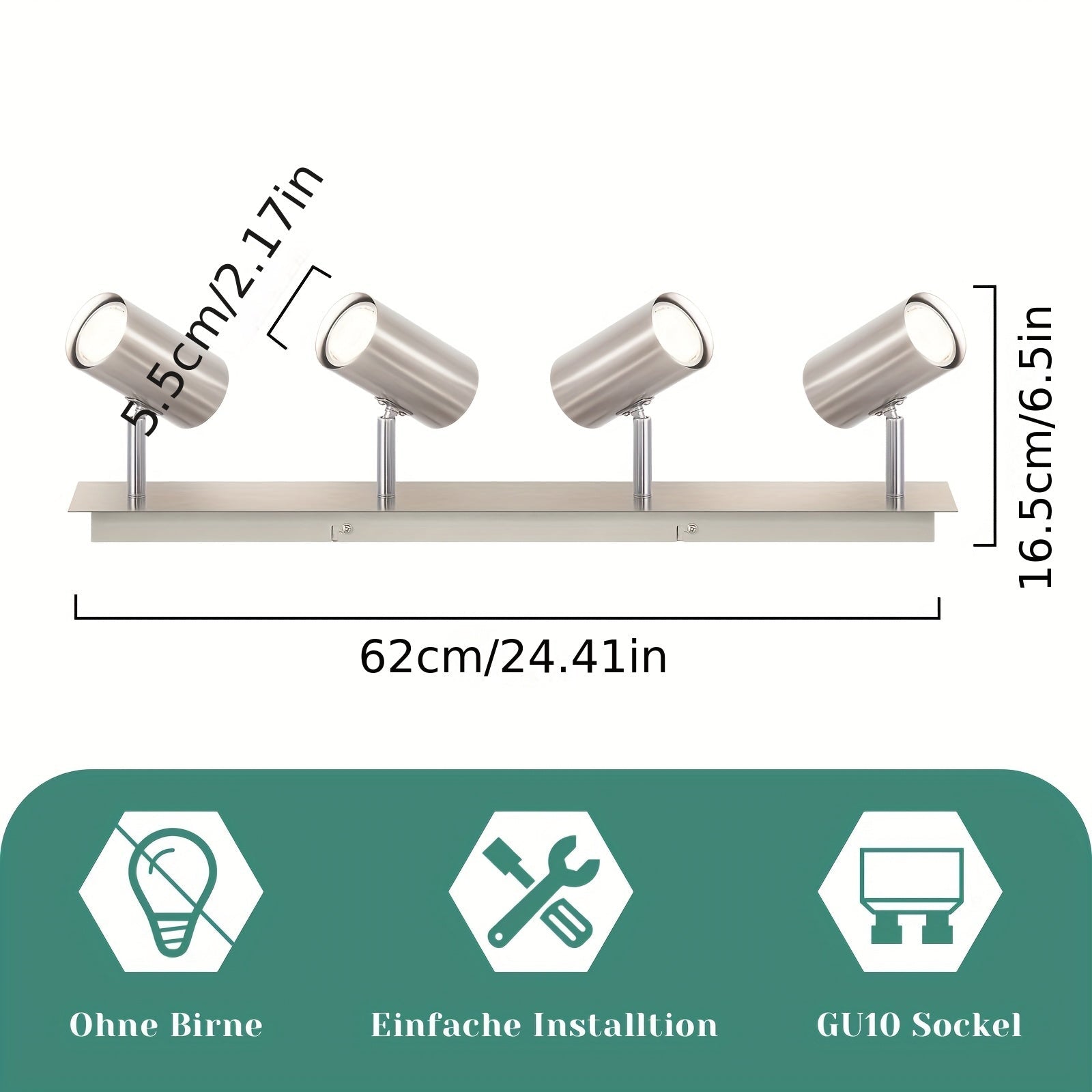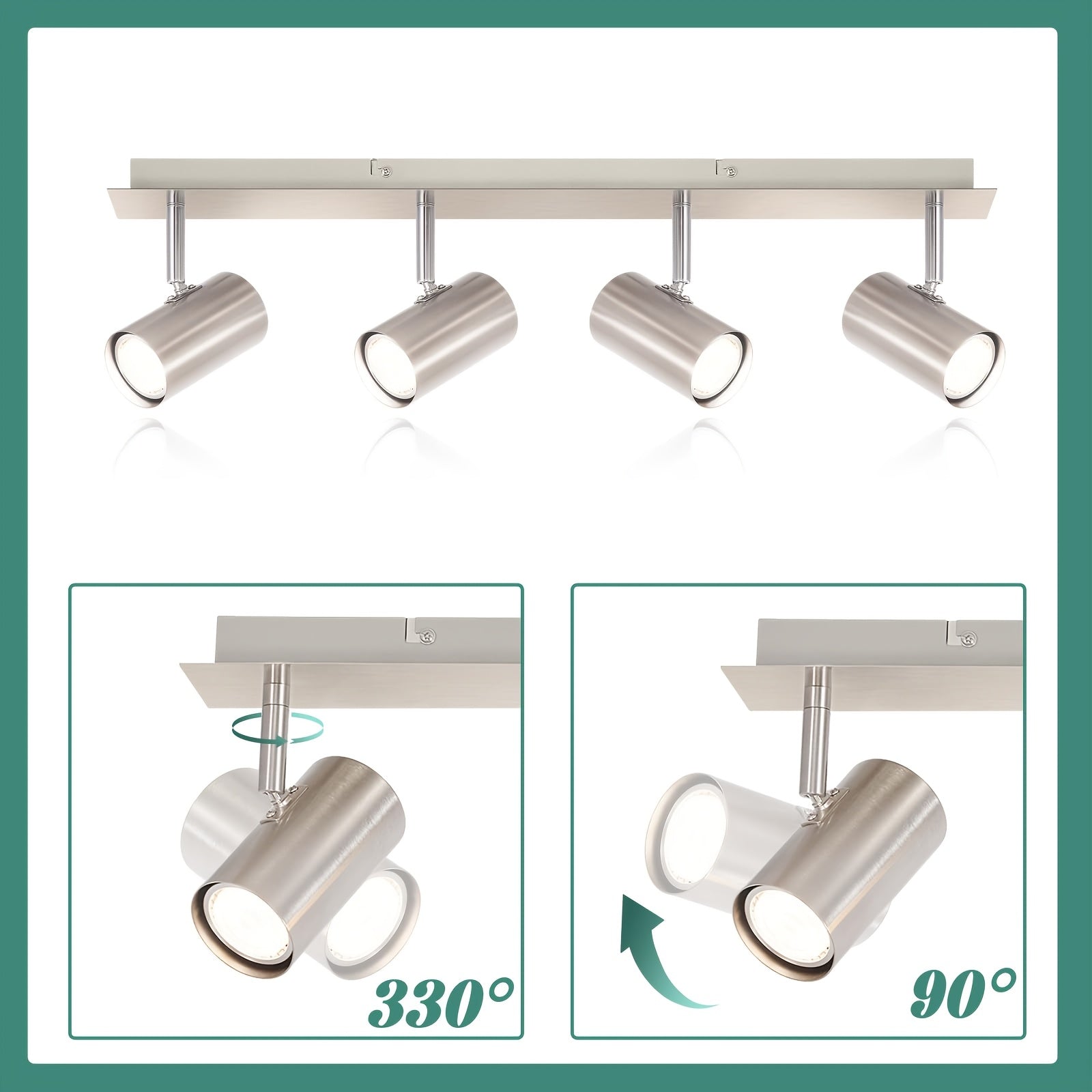 4-flammige Nickel-Deckenlampe 330° Drehbar, GU10 Kompatibel