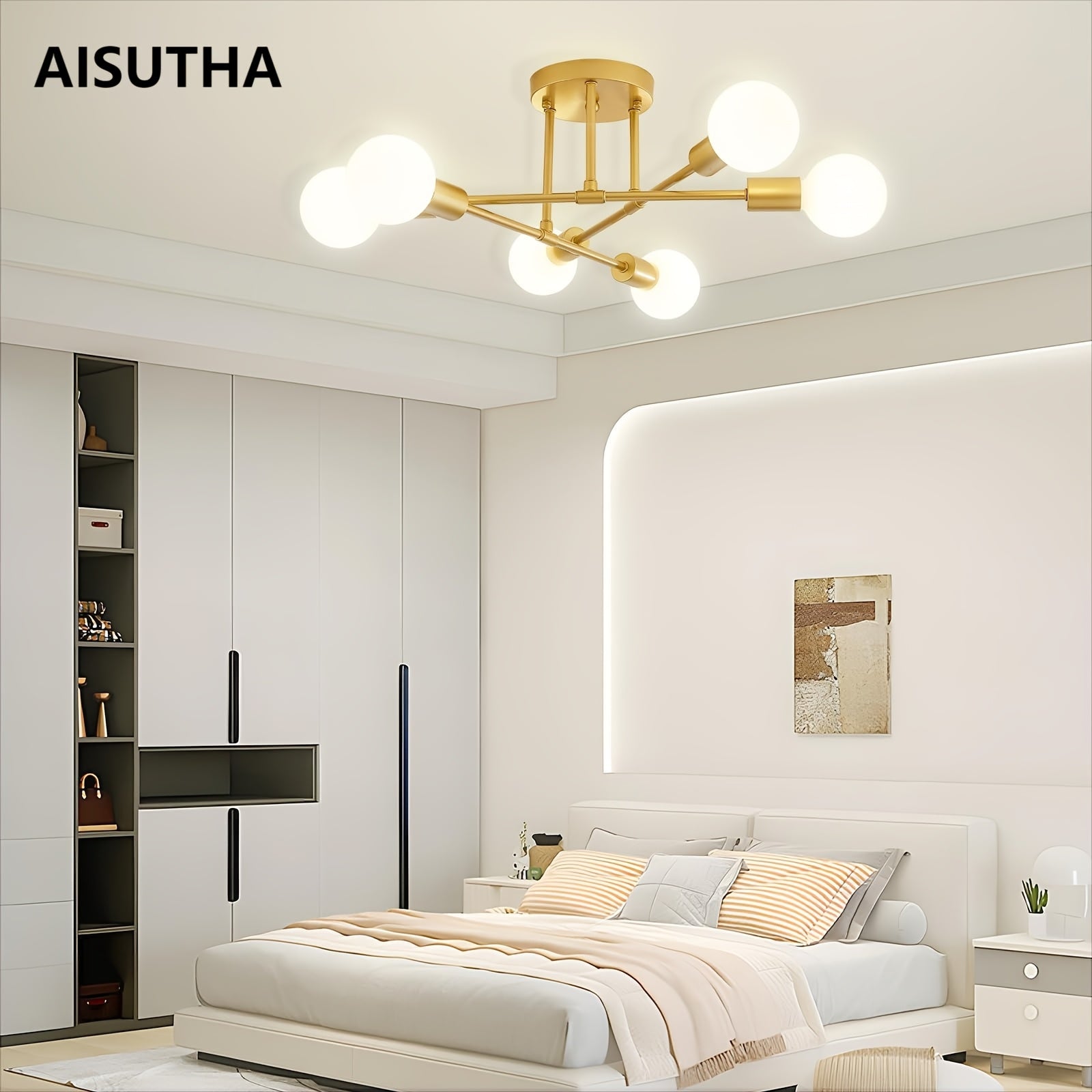 6-flammiger Kronleuchter Schwarz-Gold, Minimalistisches Design für Küche