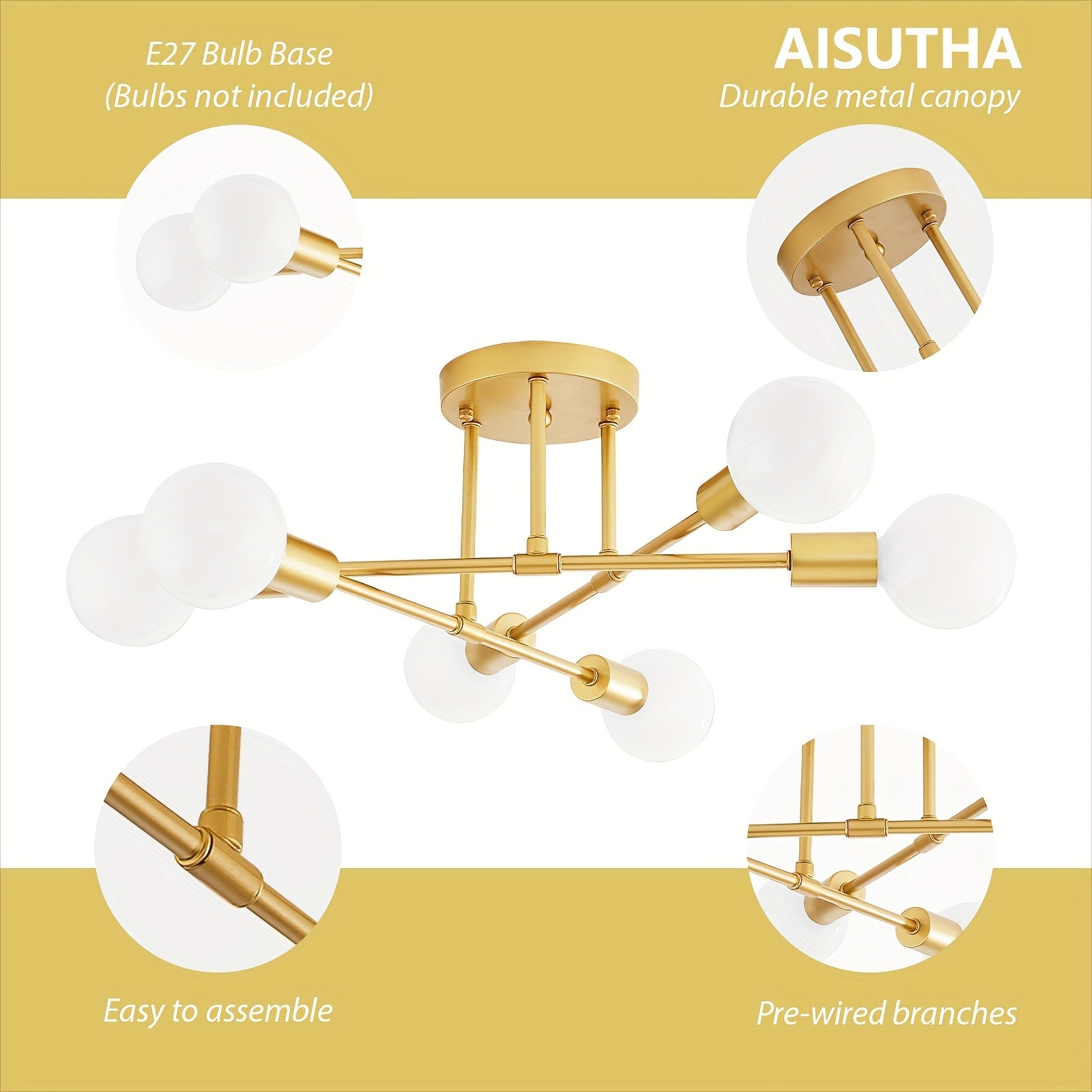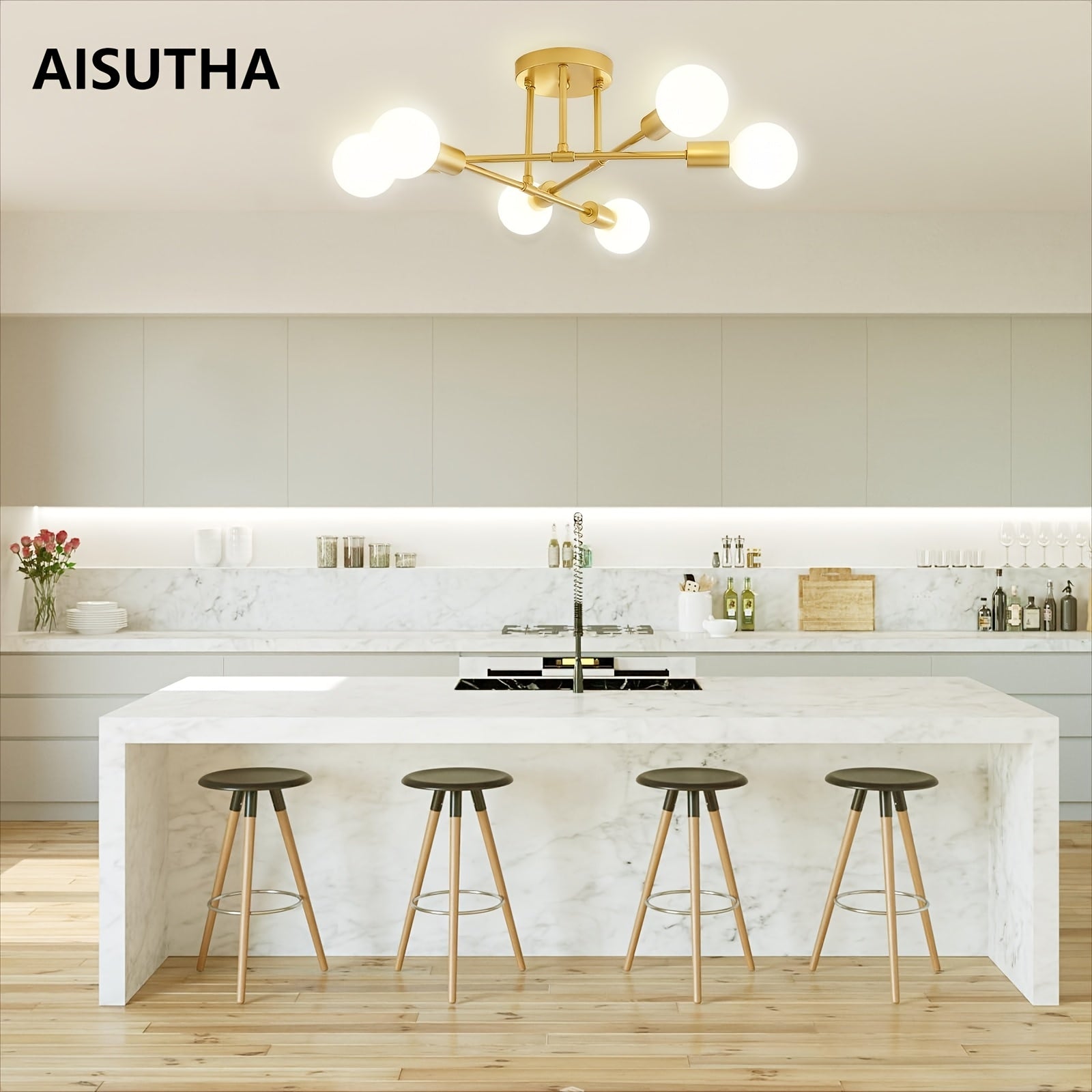 Verleihen Sie Ihrer Küche mit diesem 6-flammigen Kronleuchter im minimalistischen Schwarz-Gold Design einen eleganten und modernen Touch. Perfekt, um eine stilvolle Atmosphäre zu schaffen und Ihre Räume zu beleuchten.