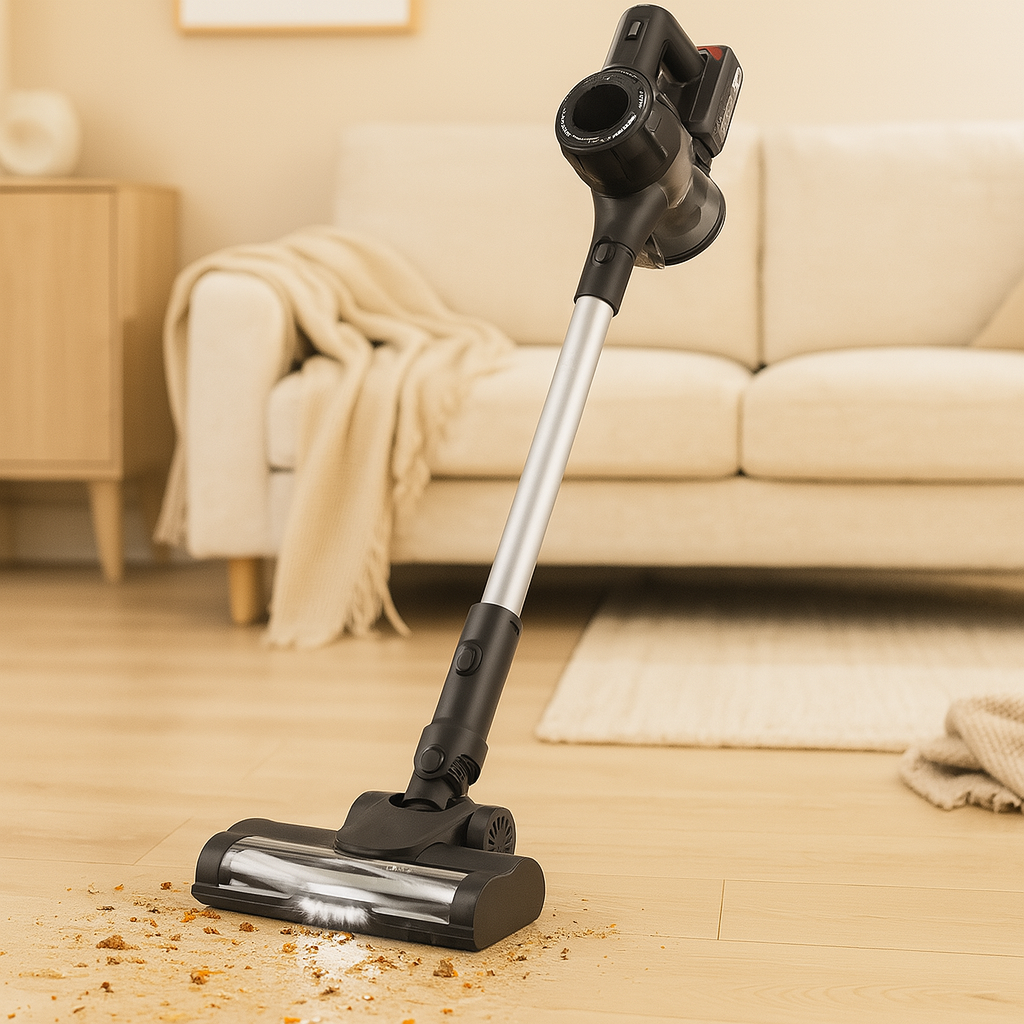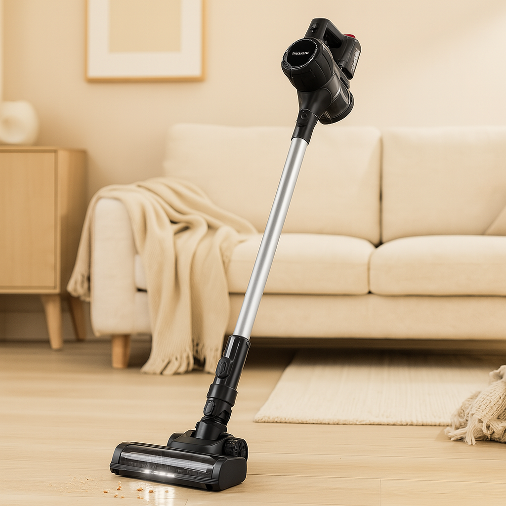 6-in-1 Akku-Staubsauger – Bürstenloser Motor mit LED-Bodenbürste und mehreren Aufsätzen