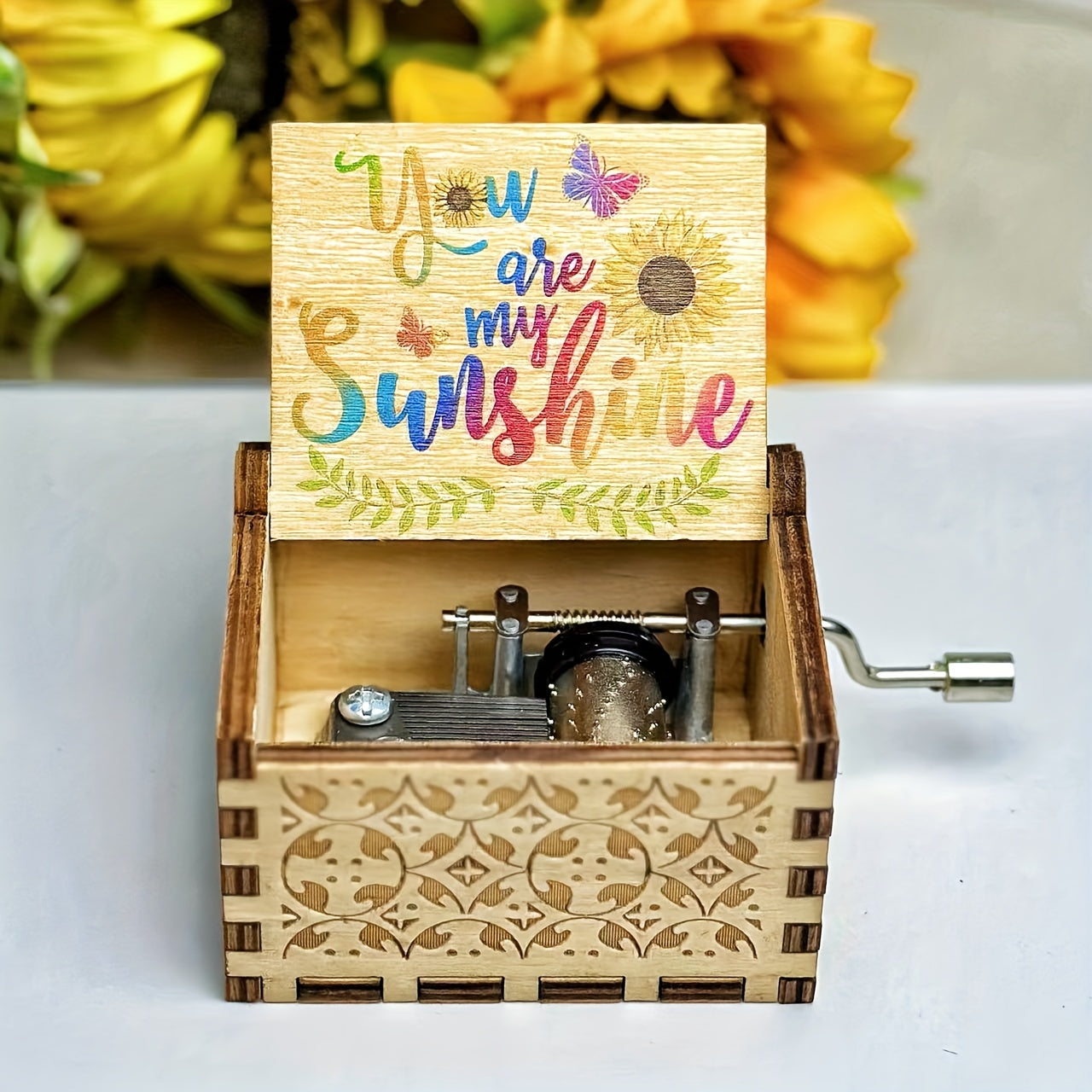 Vintage Lasergravierte Spieluhr "Du bist mein Sonnenschein"