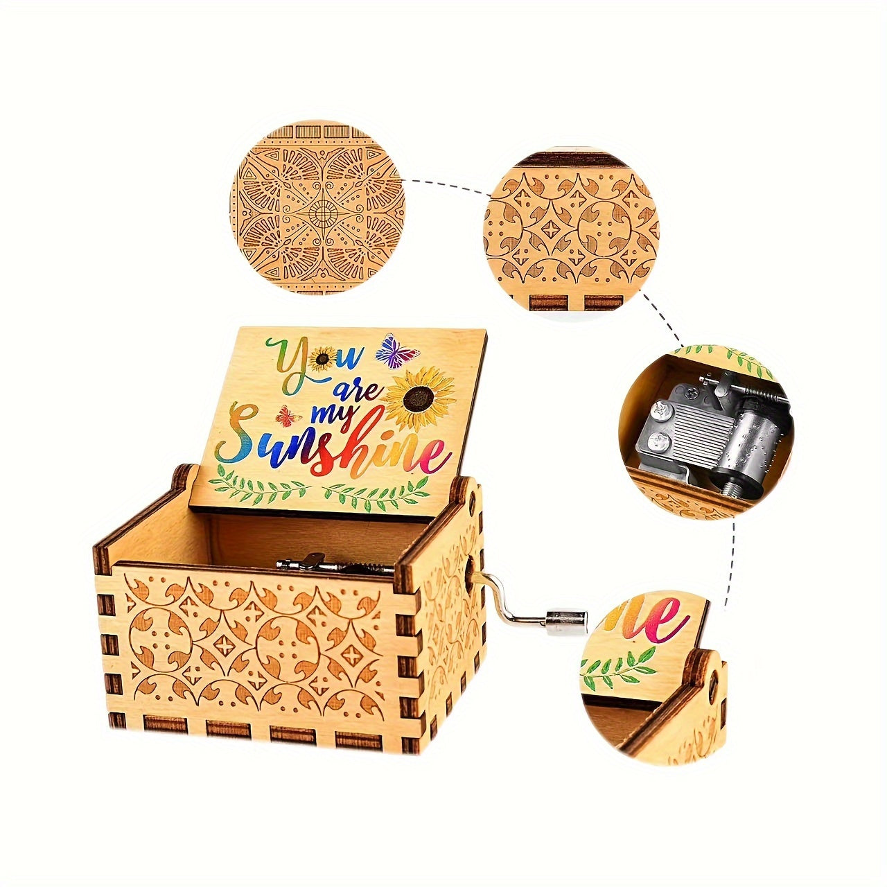 Erleben Sie den Charme einer zeitlosen Melodie mit dieser vintage lasergravierten Spieluhr mit der liebevollen Inschrift „Du bist mein Sonnenschein“. Perfekt für sentimentale Momente und ideal als Geschenk zu Geburtstagen, Thanksgiving, Valentinstag, Weihnachten und Neujahr.