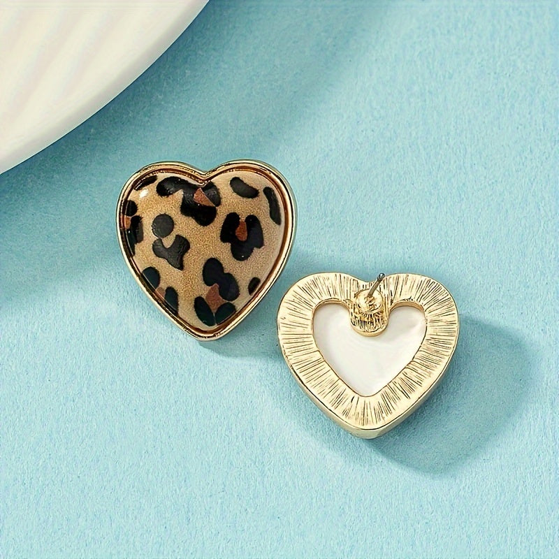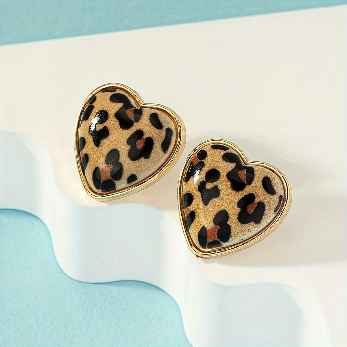 Vintage Leopardenmuster Herz Acryl Steckerohrringe für Damen