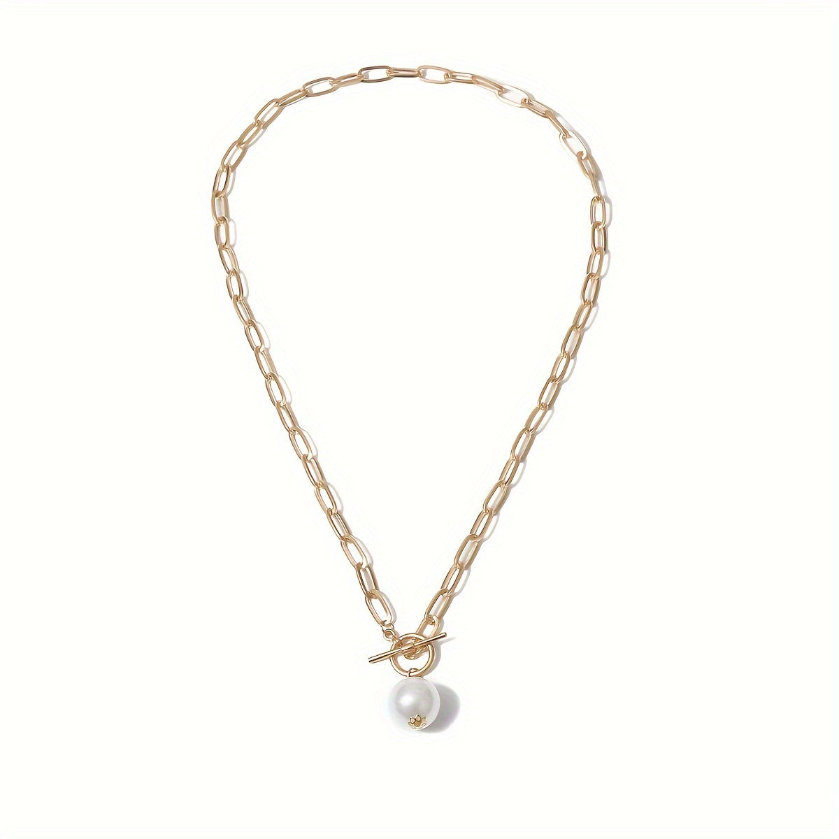 Diese Halskette im Vintage-Stil verfügt über einen beeindruckenden Anhänger aus weißen Imitationsperlen, der jedem Outfit einen Hauch von Raffinesse verleiht. Die Kettenverbindung besteht aus strapazierfähigem Eisen, das sowohl Stärke als auch Komfort bietet. Das verstellbare Design sorgt für eine perfekte Passform und macht die Halskette ideal für den täglichen Gebrauch, egal ob Sie sich für einen zwanglosen Ausflug stylen oder Ihrem Alltagslook einen eleganten Touch verleihen möchten. Der OT-Verschluss rundet dieses zeitlose Schmuckstück sicher und stilvoll ab. Der Vintage-Charme der Imitationsperlen in Kombination mit der klassischen Kettenverbindung macht diese Halskette zu einem vielseitigen Accessoire, das mit verschiedenen Outfits kombiniert werden kann.