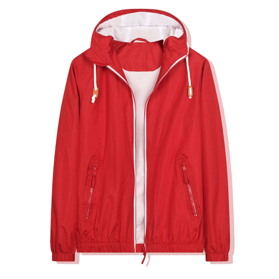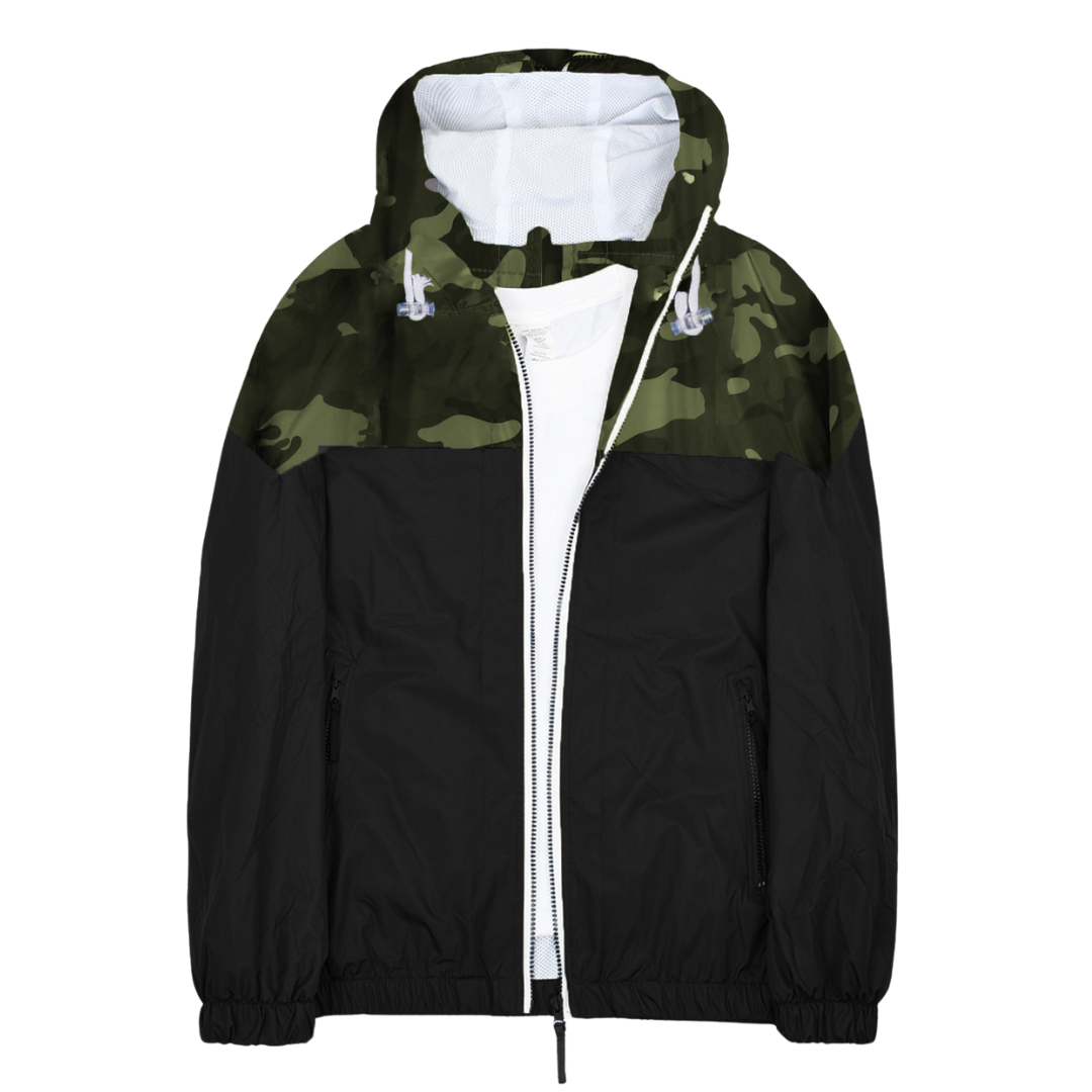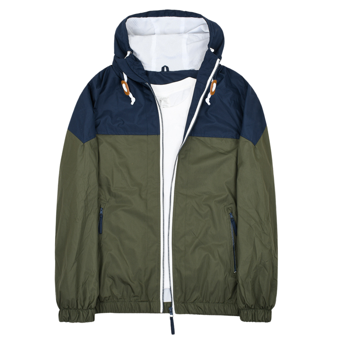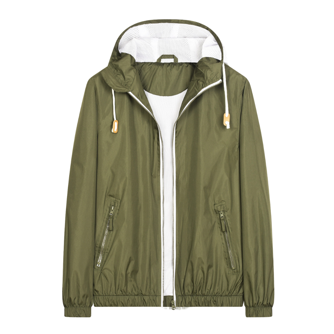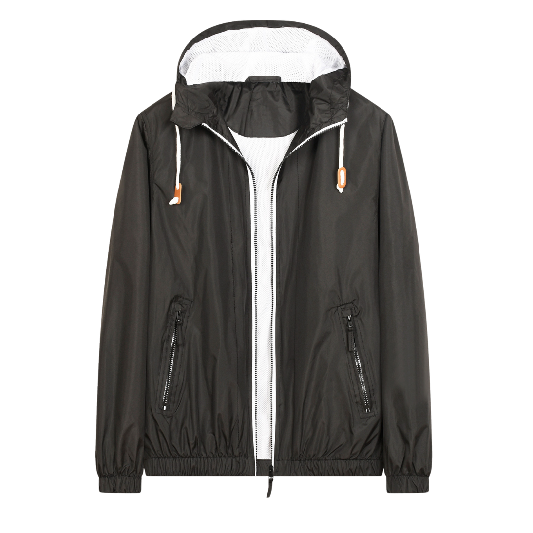 Diese leichte Jacke zeigt ein zweifarbiges Design mit durchgehendem Reißverschluss und angesetzter Kapuze. Die Kapuze ist mit Kordelzügen und dekorativen Akzenten ausgestattet. Seitliche Reißverschlusstaschen und elastische Bündchen sorgen für einen sicheren Sitz und machen die Jacke zu einer funktionalen und stilvollen Wahl für die Übergangszeit.