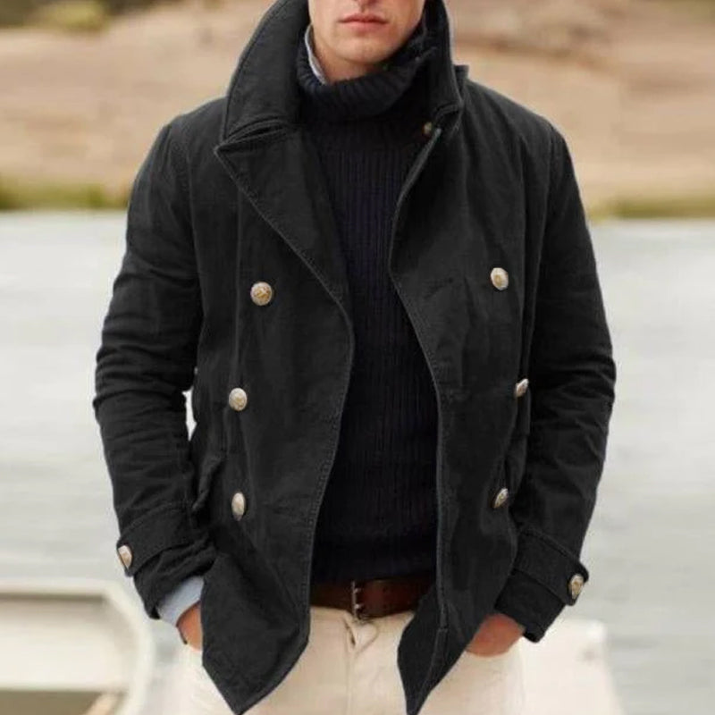 Diese zweireihige Herrenjacke kombiniert ein klassisches Design mit modernen Akzenten. Mit einem markanten Revers und Messingknöpfen eignet sie sich sowohl für den Alltag als auch besondere Anlässe. Sie bietet nicht nur stilvolle Eleganz, sondern auch den ganzen Tag über bequemen Tragekomfort.